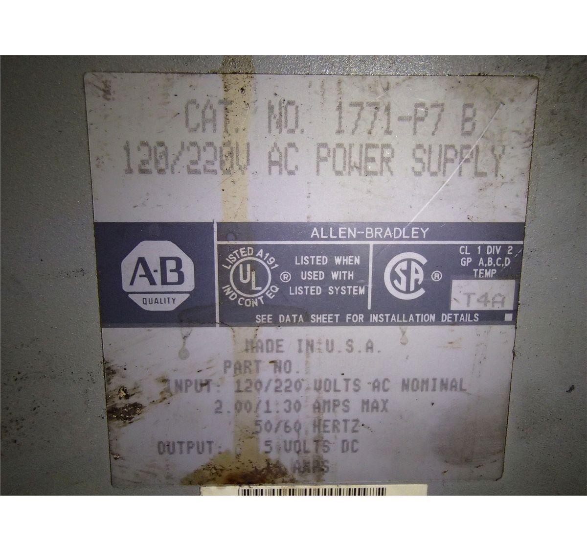 Allen Bradley 1771-P7 B Power Supply
