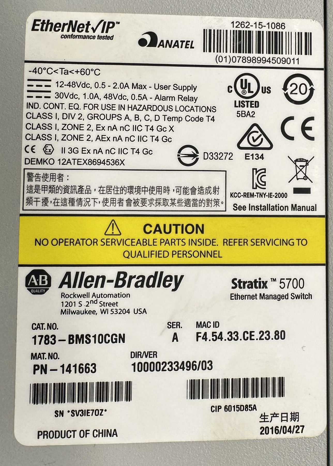 Allen Bradley #1783-BMS10CGN Stratix 5700 Ethernet Managed Switch