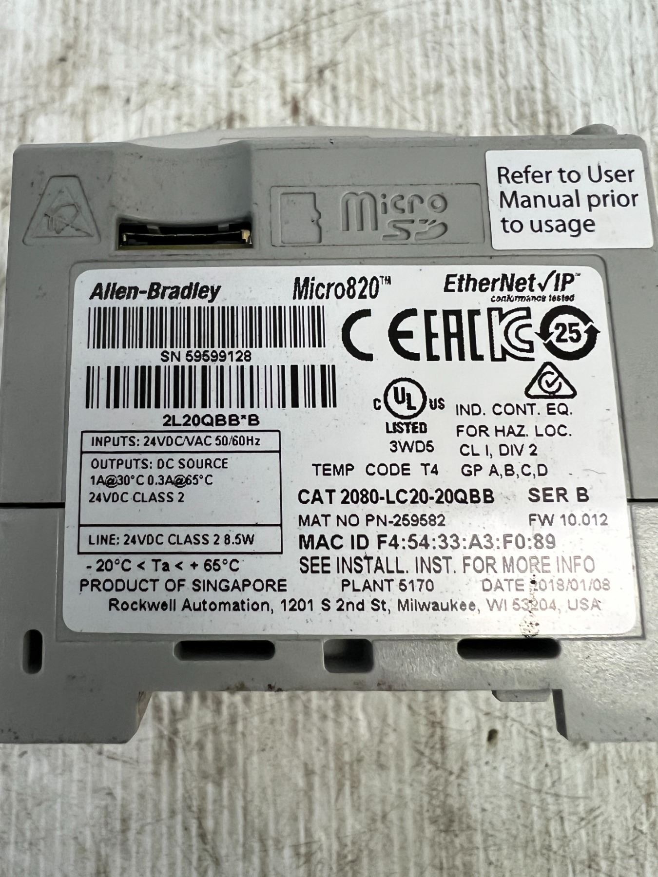 Allen-Bradley #2080-LC20-20QBB Micro820