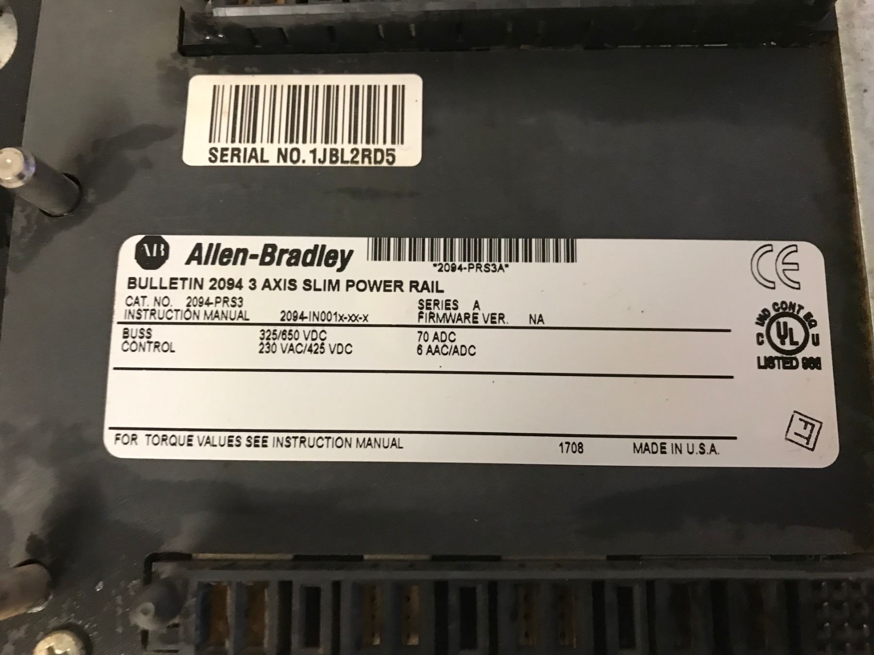 Allen Bradley 2094-PRS3 Bulletin 2094 3 Axis Slim Power Rail