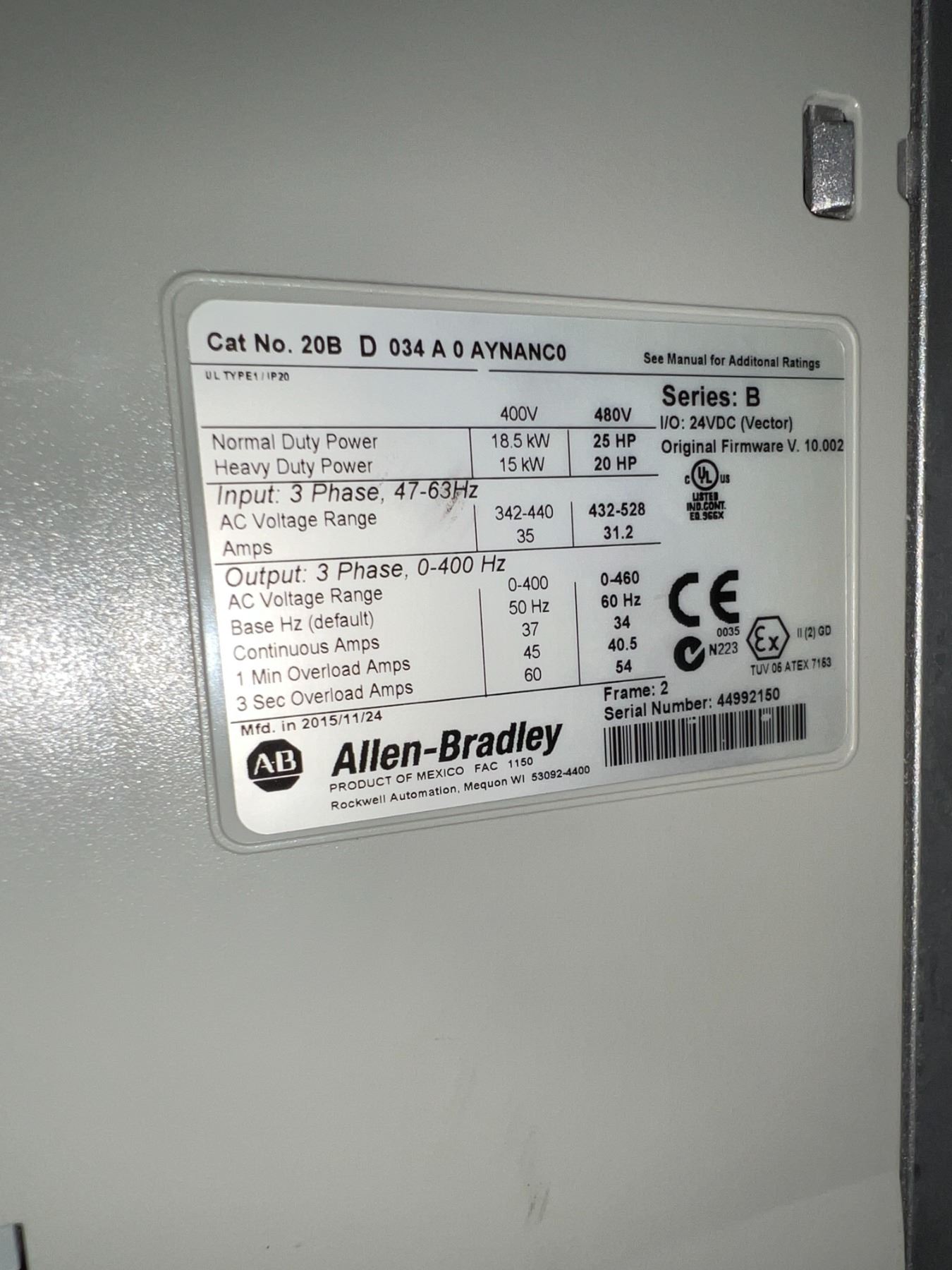Allen-Bradley #20B D 034 A 0 AYNANC0 PowerFlex 700 Drive