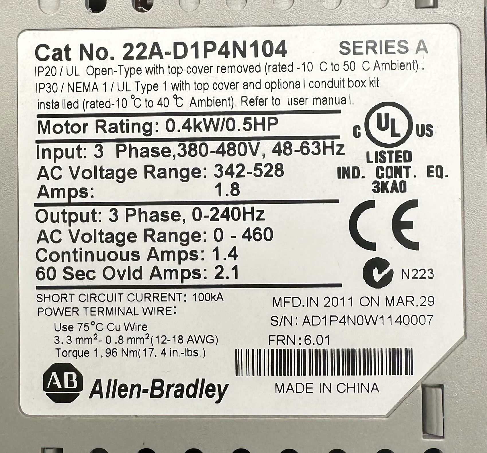 Allen Bradley #22A-D1P4N104 Power Flex 4
