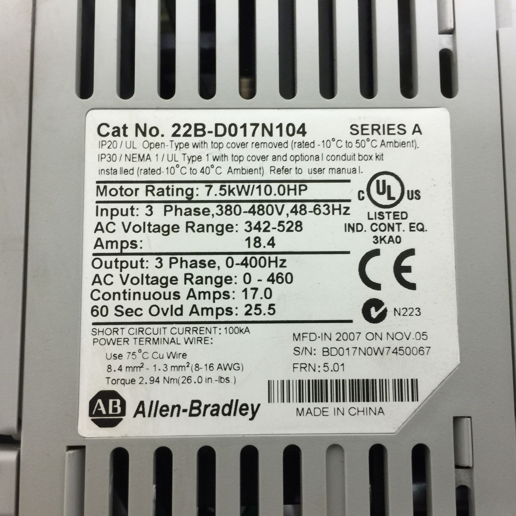 Allen-Bradley 22B-D017N104 PowerFlex Variable Motor Drive