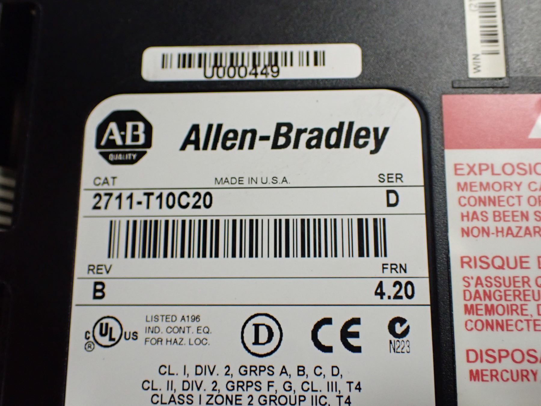 Allen Bradley #2711-T10C20 PanelView 1000 Screen