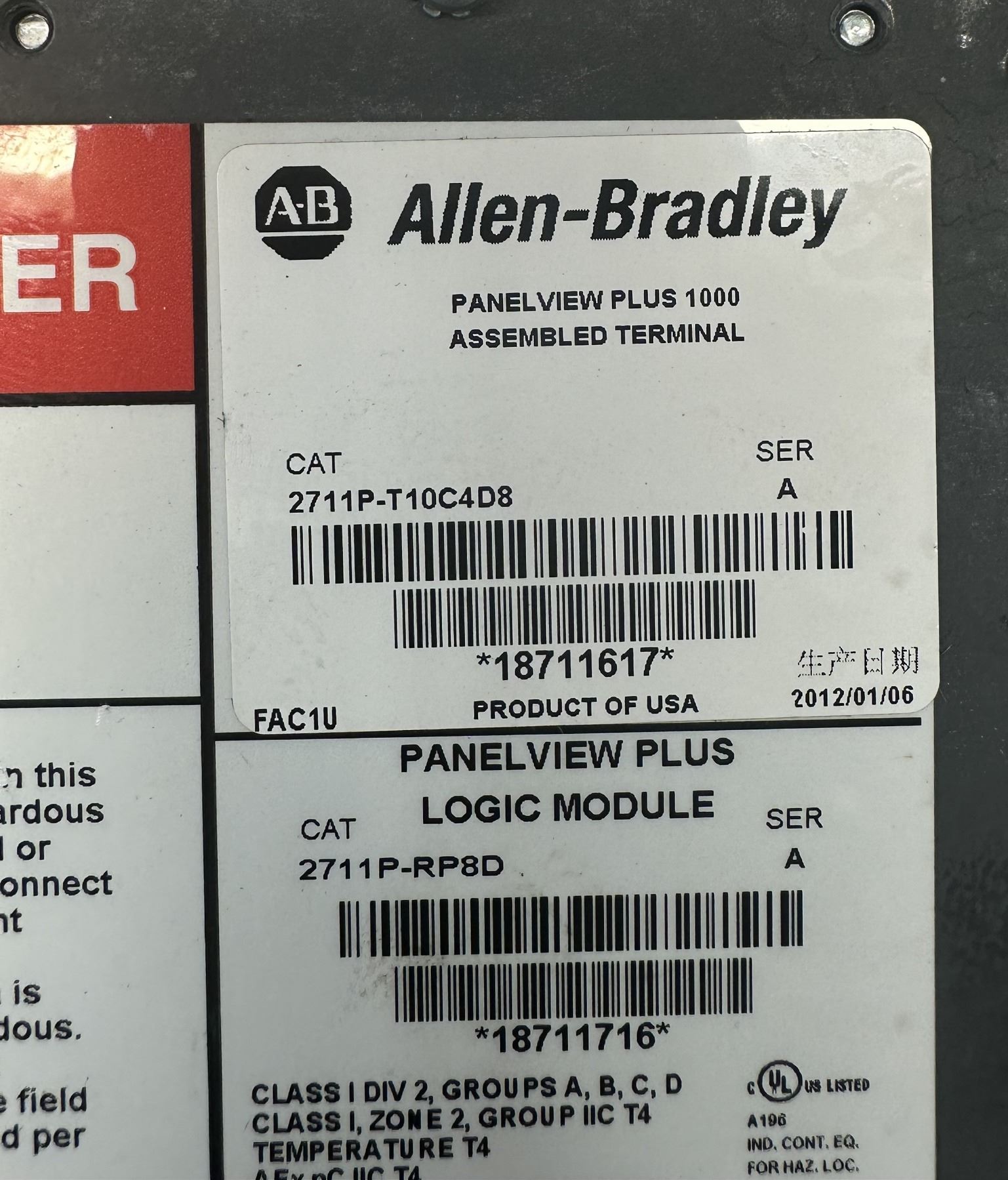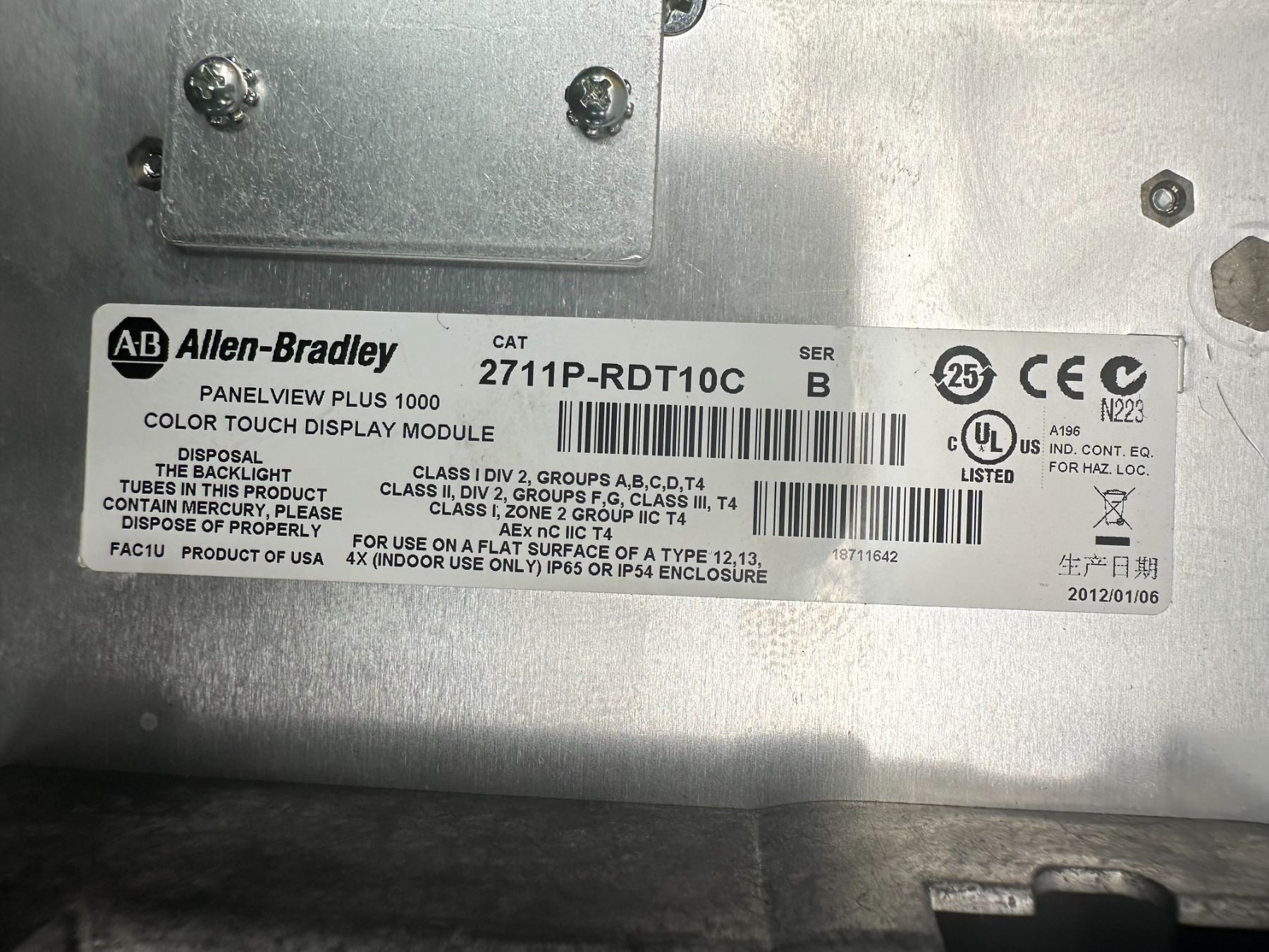 Allen Bradley #2711P-RDT10C Panel View Plus 1000 Color Touch Display