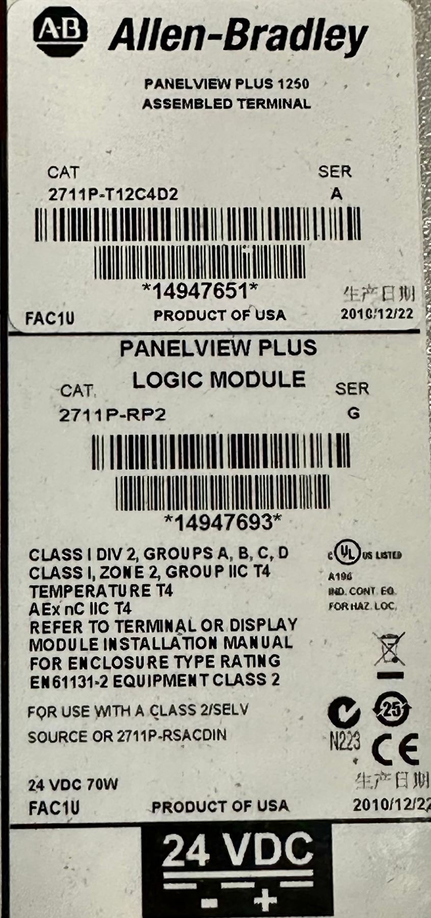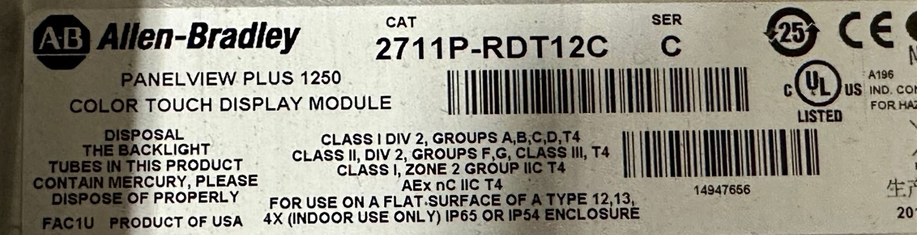 Allen-Bradley #2711P-RDT12C / 2711P-T12C4D2 Panel View Plus 1250 Screen