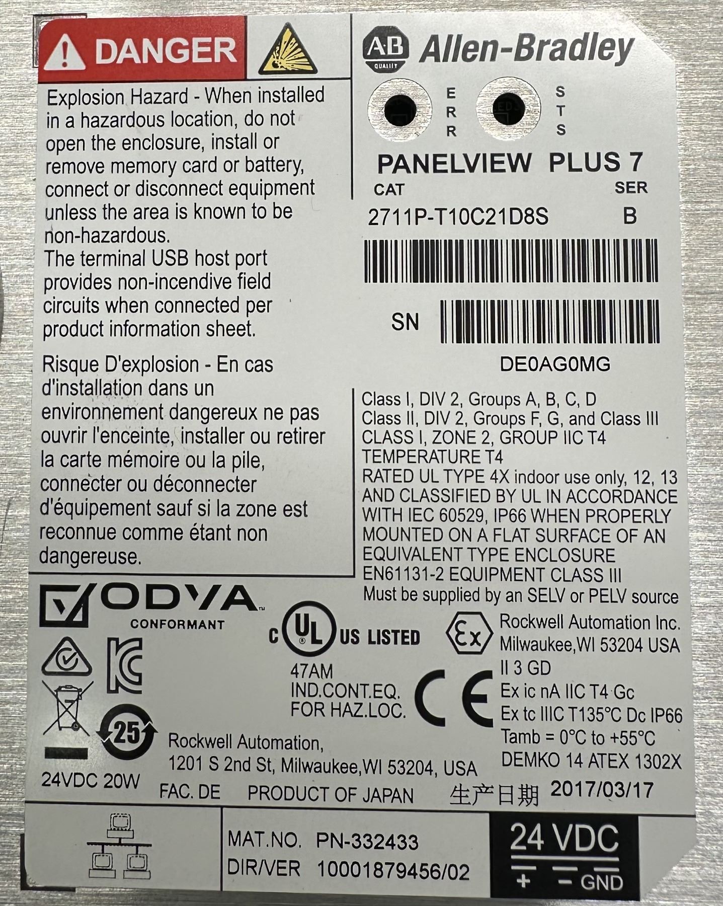 Allen Bradley #2711P-T10C21D8S Panel View Plus 7