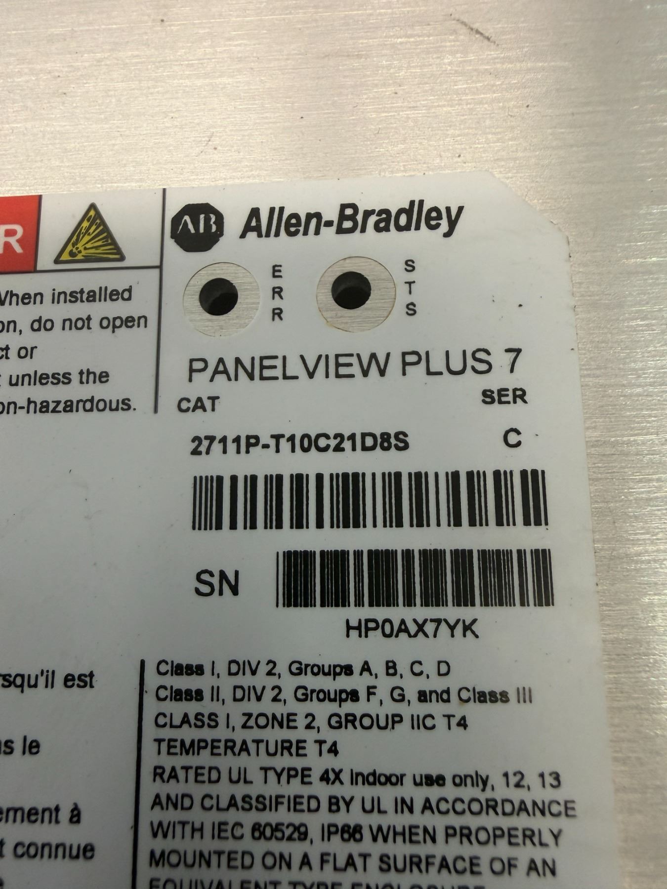 Allen-Bradley #2711P-T10C21D8S Panelview Plus 7