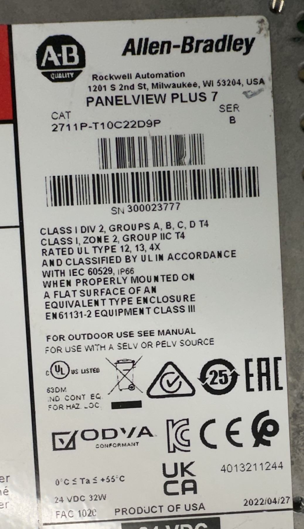 Allen Bradley #2711P-T10C22D9P Panelview Plus 7 Touch Screen