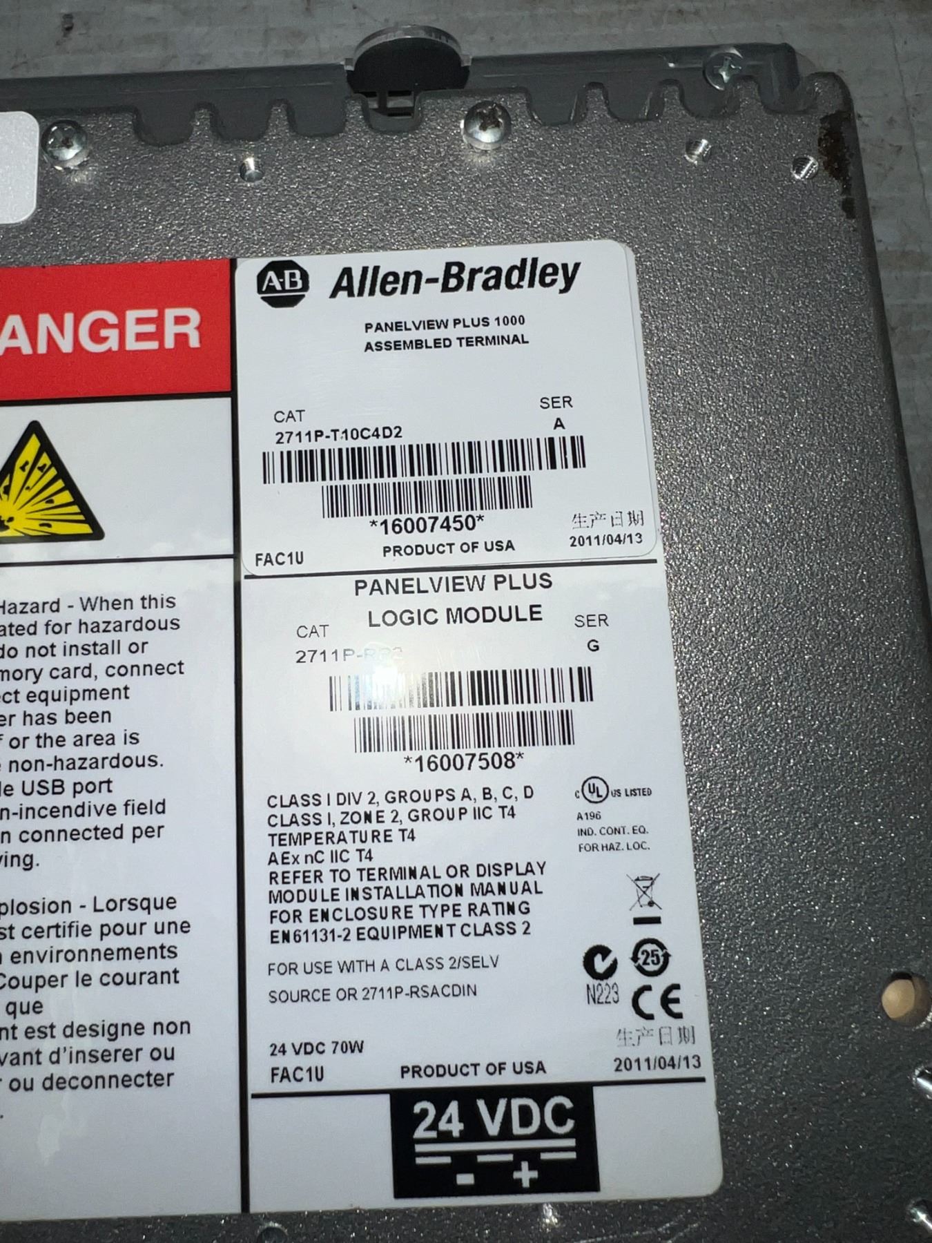 Allen-Bradley #2711P-T10C4D2 Panelview Plus 1000 Assembled Terminal