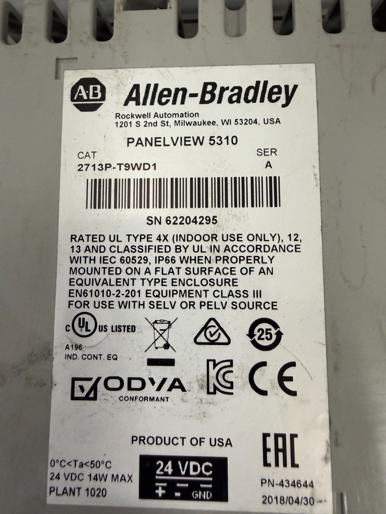 Allen-Bradley #2713P-T9WD1 Panelview 5310