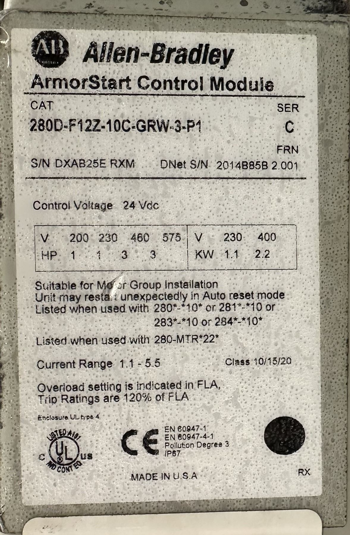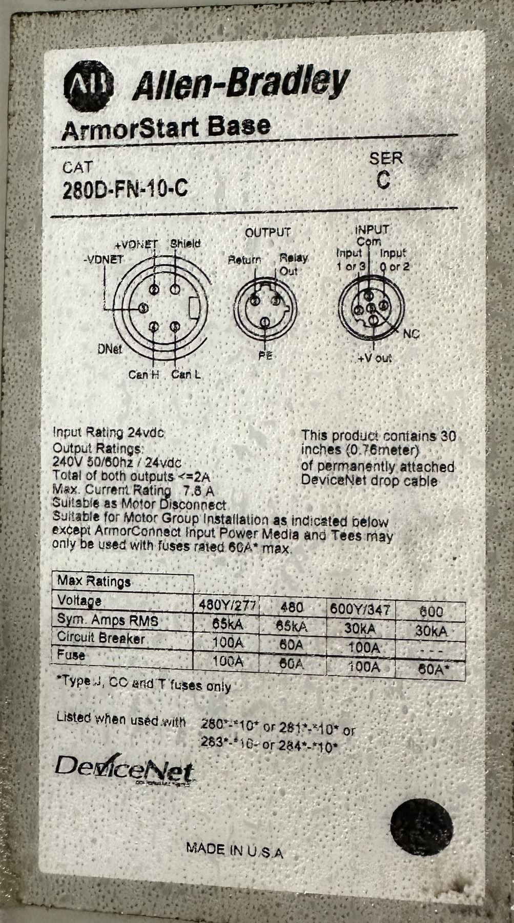 Allen Bradley #280D-FN-10-C ArmorStart Base w/#280D-F12Z-10C-GRW-3-P1 Controle Module