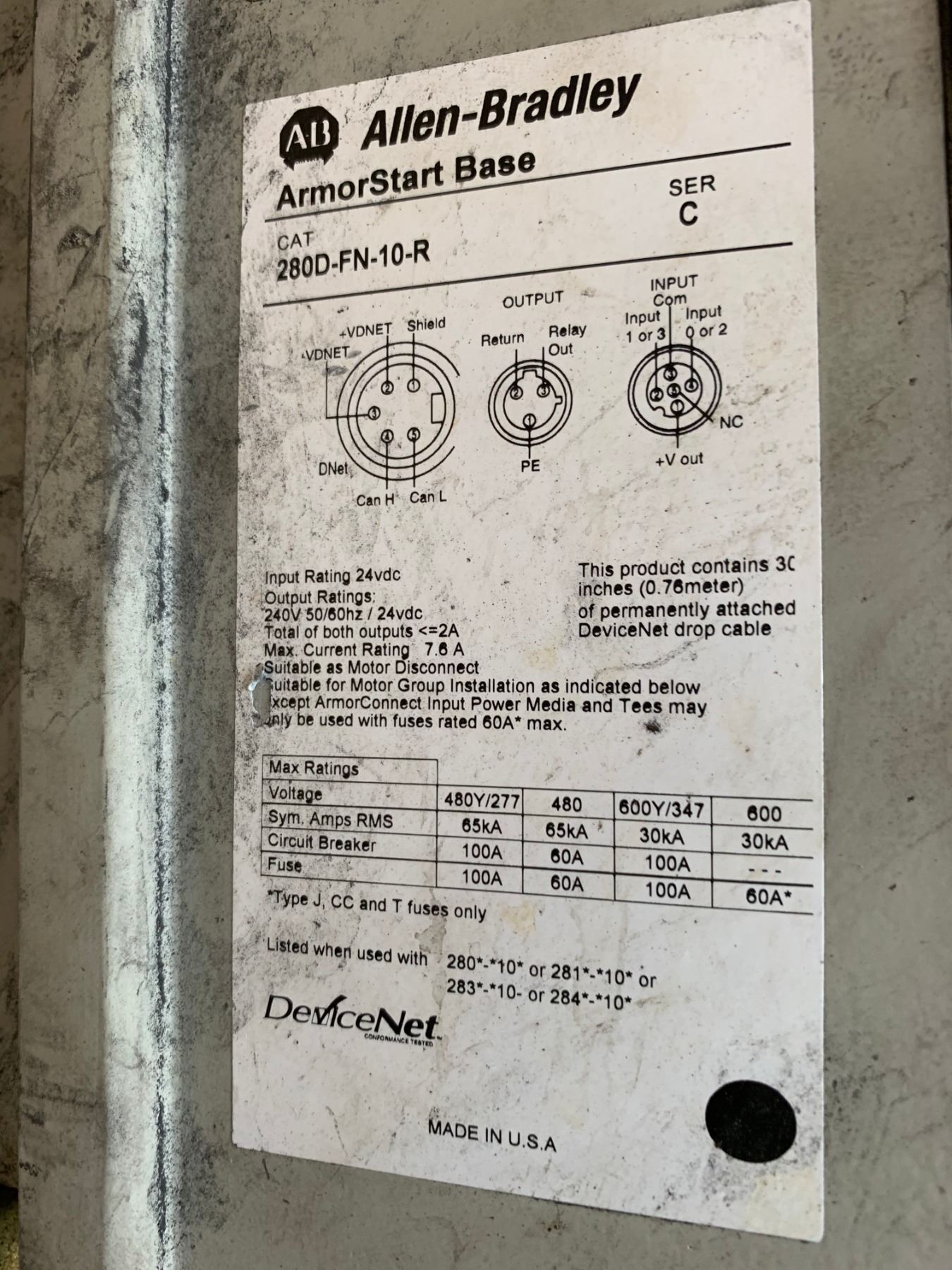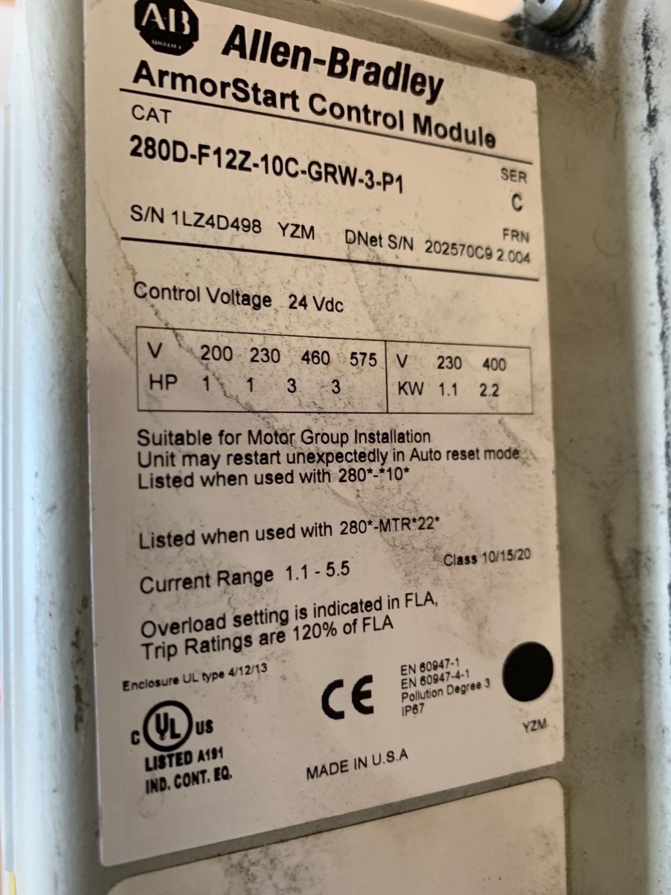 Allen-Bradley 280D-FN-10-R ArmorStart Base w/ 280D-F12Z-10C-GRW-3-P1 ArmorStart Control Module