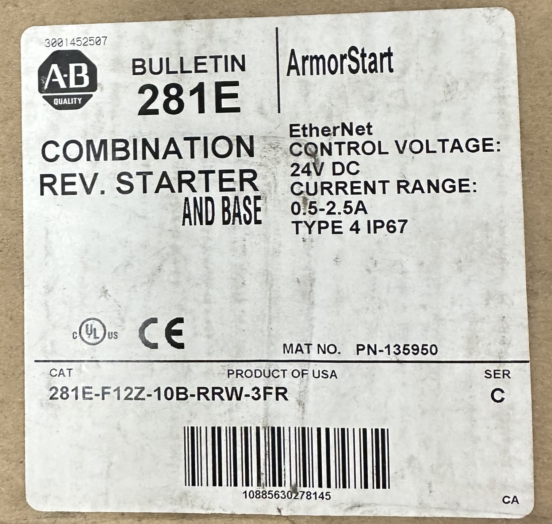 Allen Bradley ##281E-F12Z-10B-RRW-3FR Combination Starter & Base