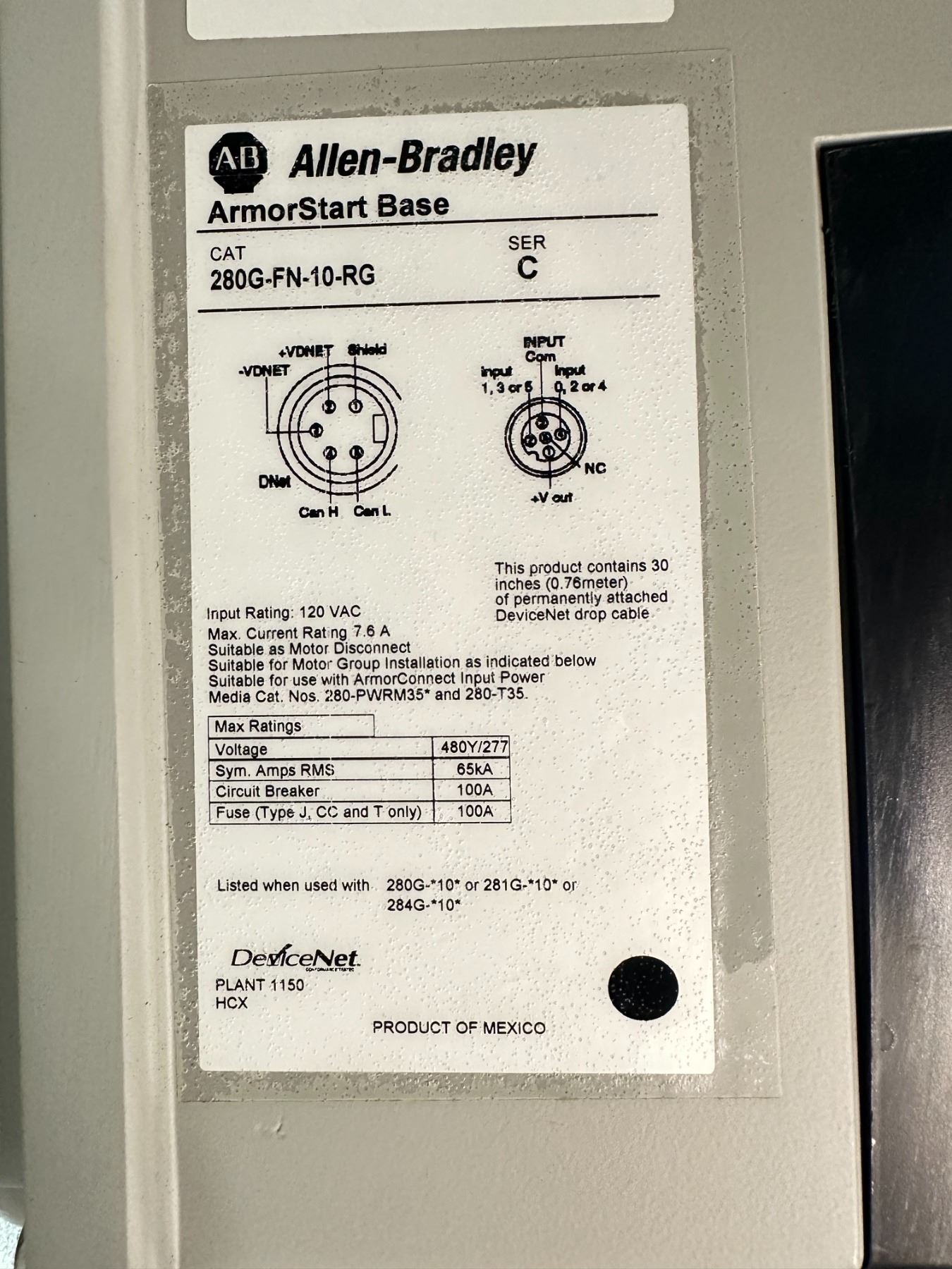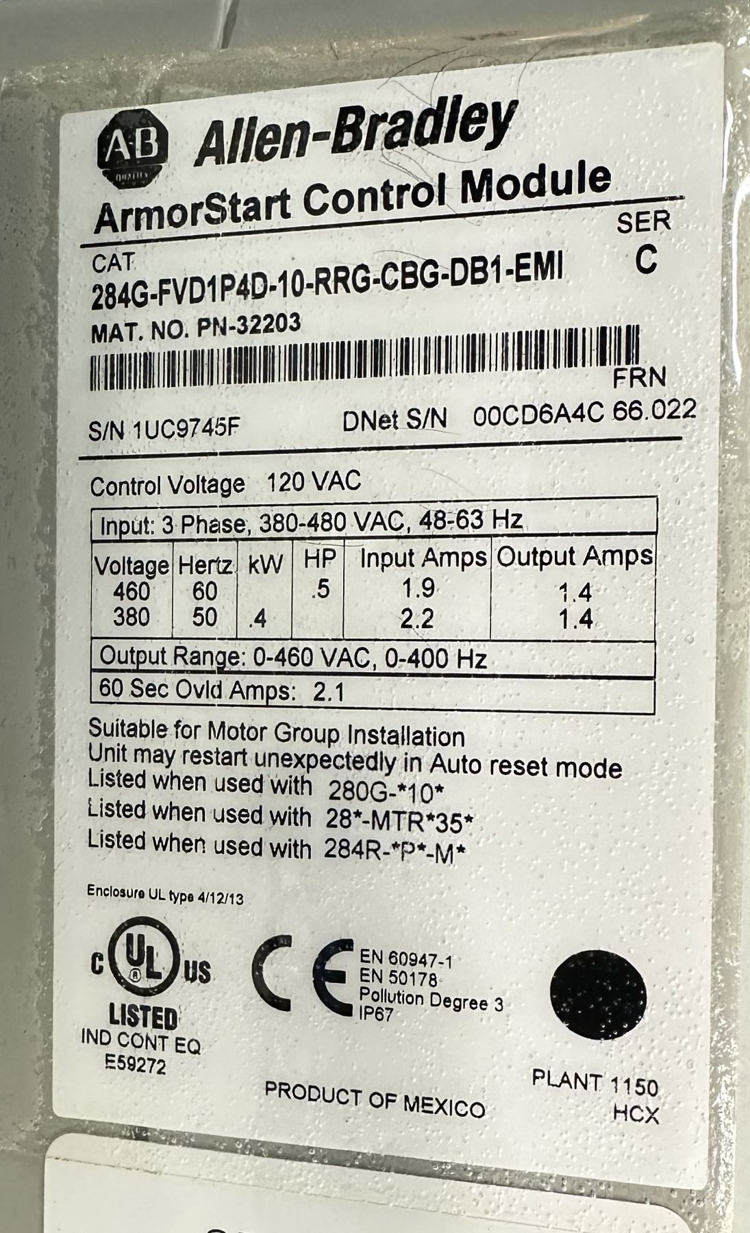 Allen Bradley ##284G-FVD1P4D-10-RRG-CBG-DB1-EMI/C ArmorStart Control Module
