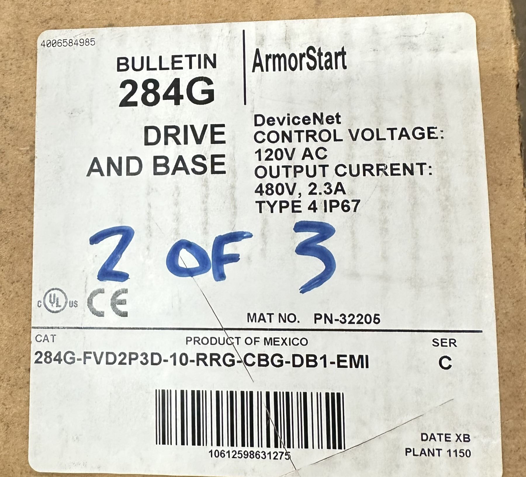 Allen Bradley #284G-FVD2P3D-10-RRG-CBG-DB1-EMI/C ArmorStart Control Module Drive & Base
