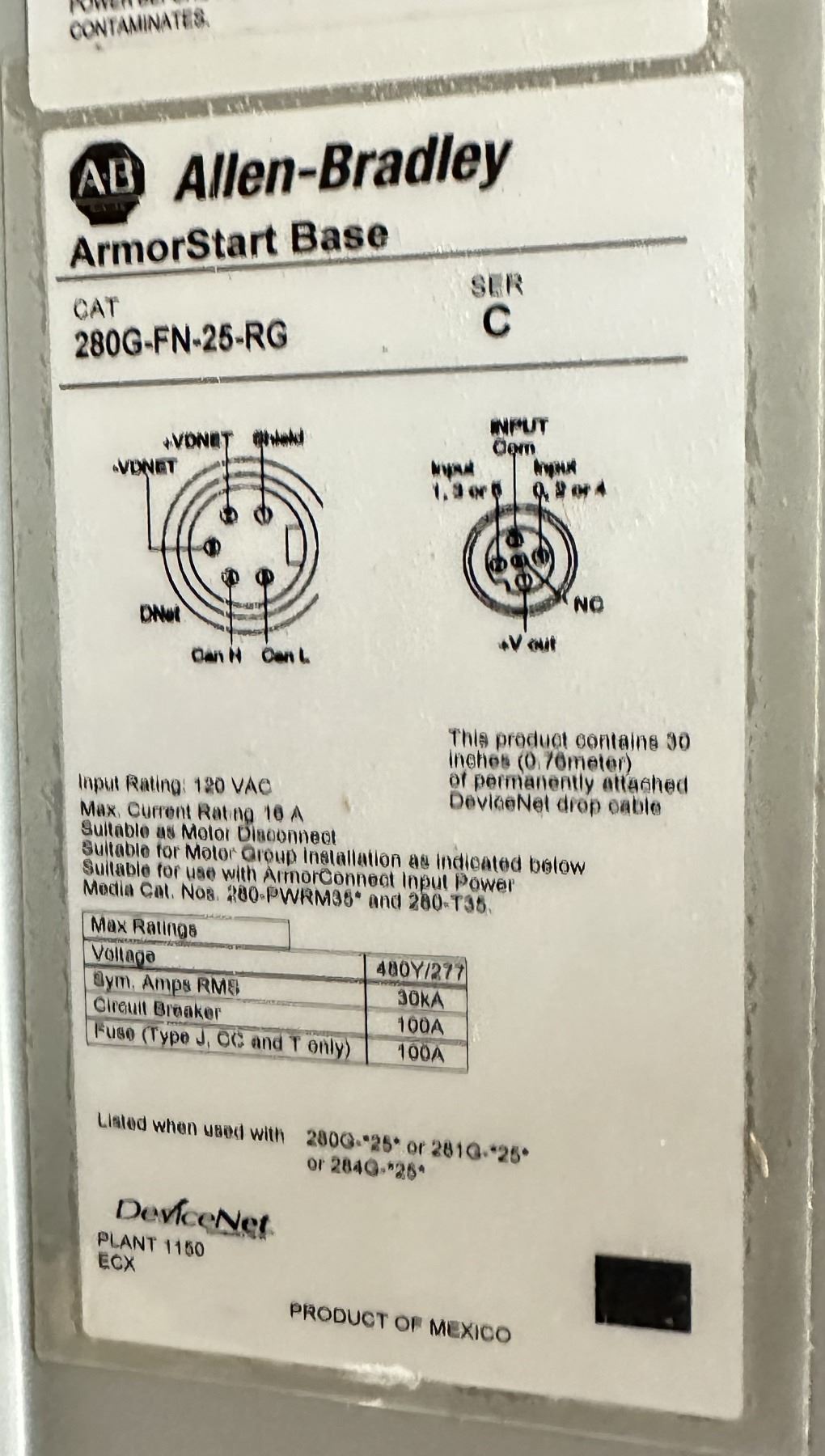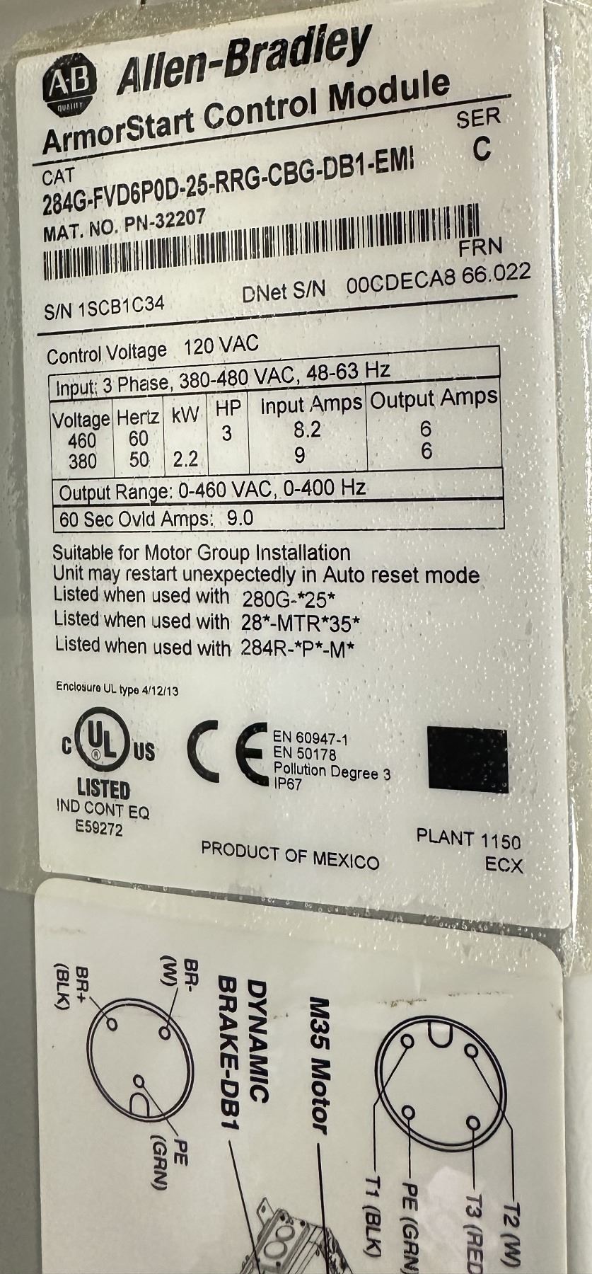 Allen Bradley ##284G-FVD6P0D-25-RRG-CBG-DB1-EMI/C ArmorStart Control Module Drive & Base
