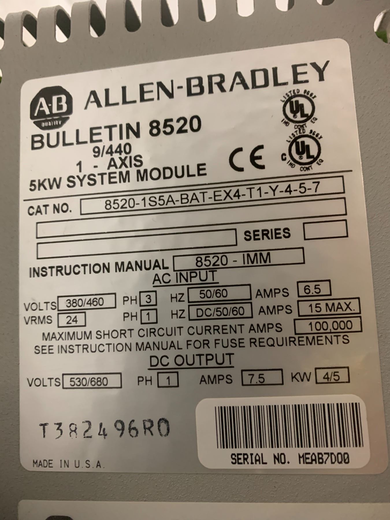 Allen-Bradley 8520-1S5A-BAT-EX4-T1-Y-4-5-7 1-AXIS 5KW System Modules