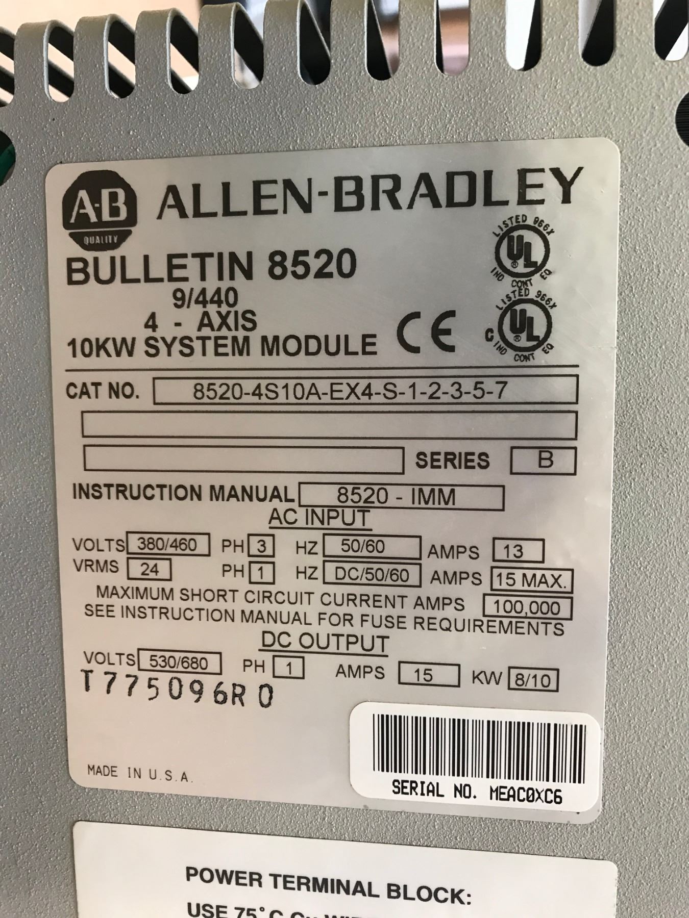 Allen-Bradley 8520-4S10A-EX4-S-1-2-3-5-7 Ser B System Module