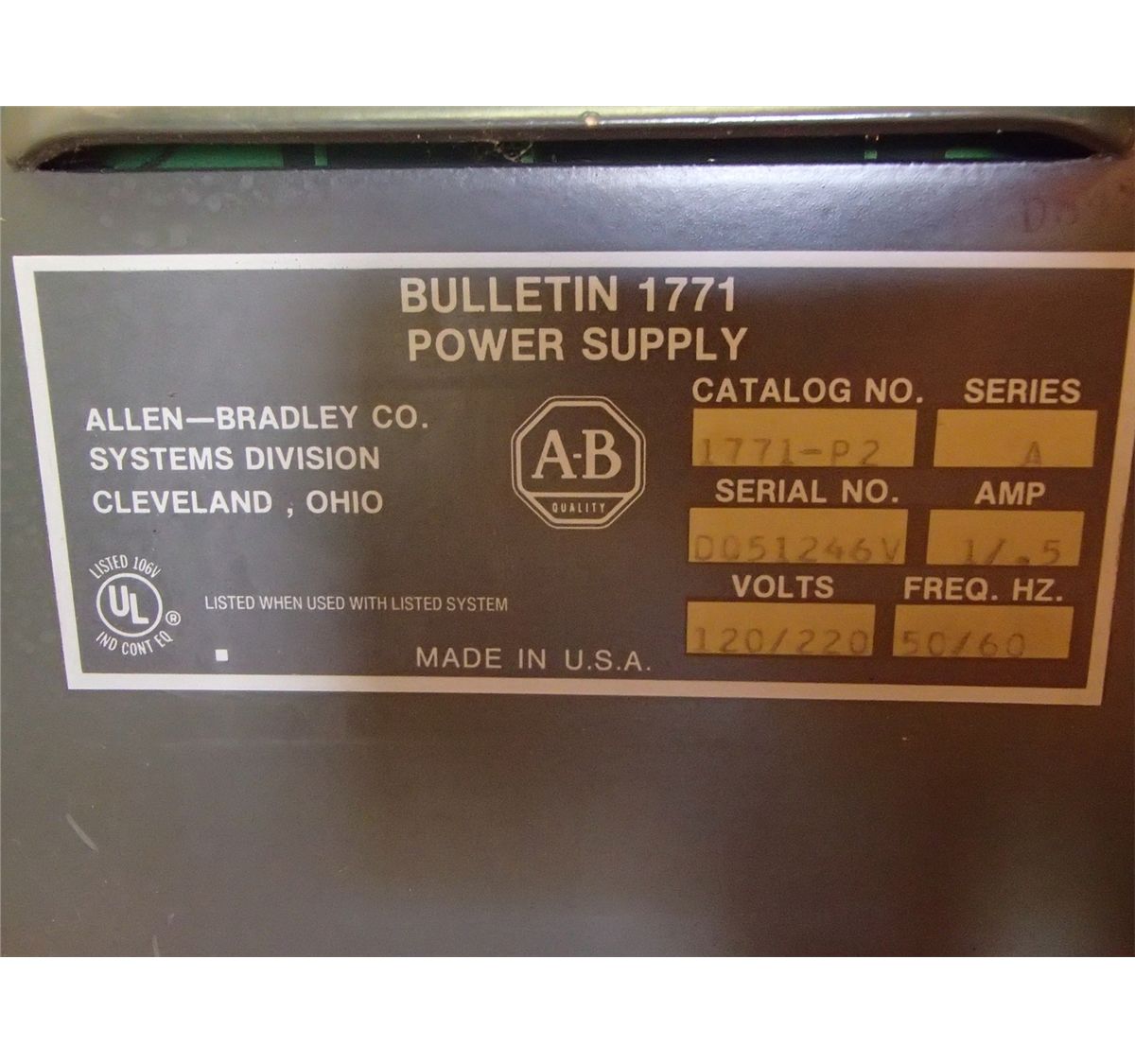 with Power Supply 1771-P2 Series A