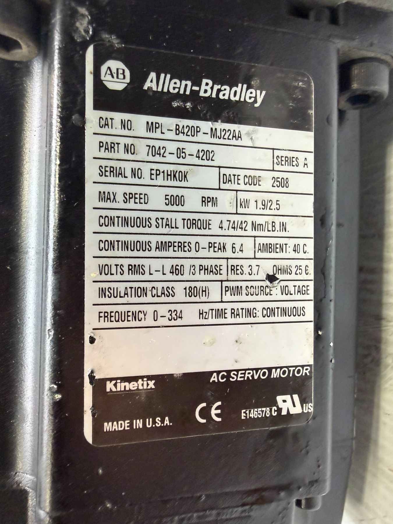 Allen-Bradley #MPL-B420P-MJ22AA AC Servo Motor