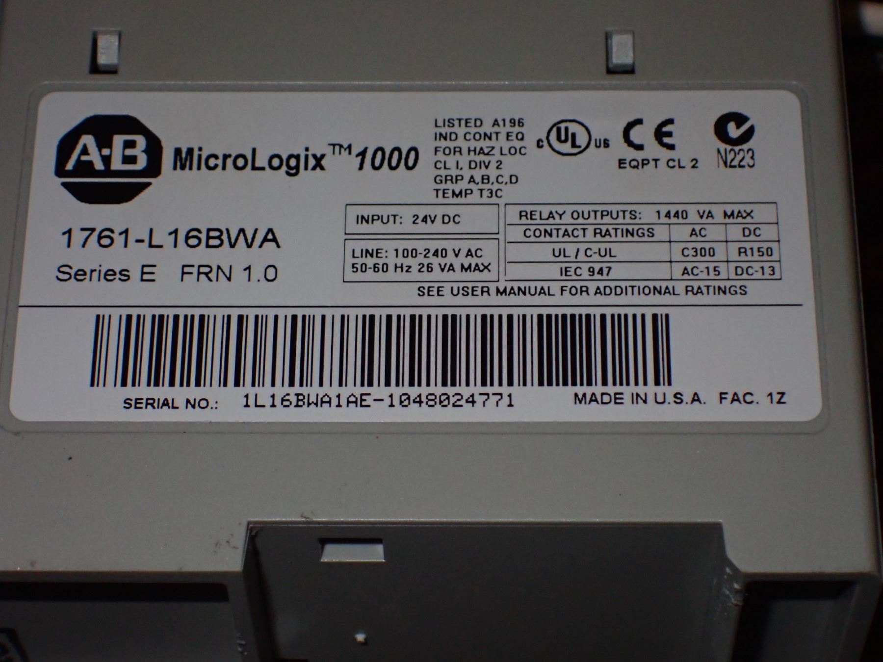 Allen Bradley Micrologix 1000 CAT#1761-L16BWA