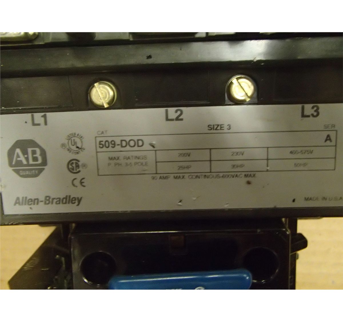 Allen Bradley Size 3 Starter #509-DOD, Series A