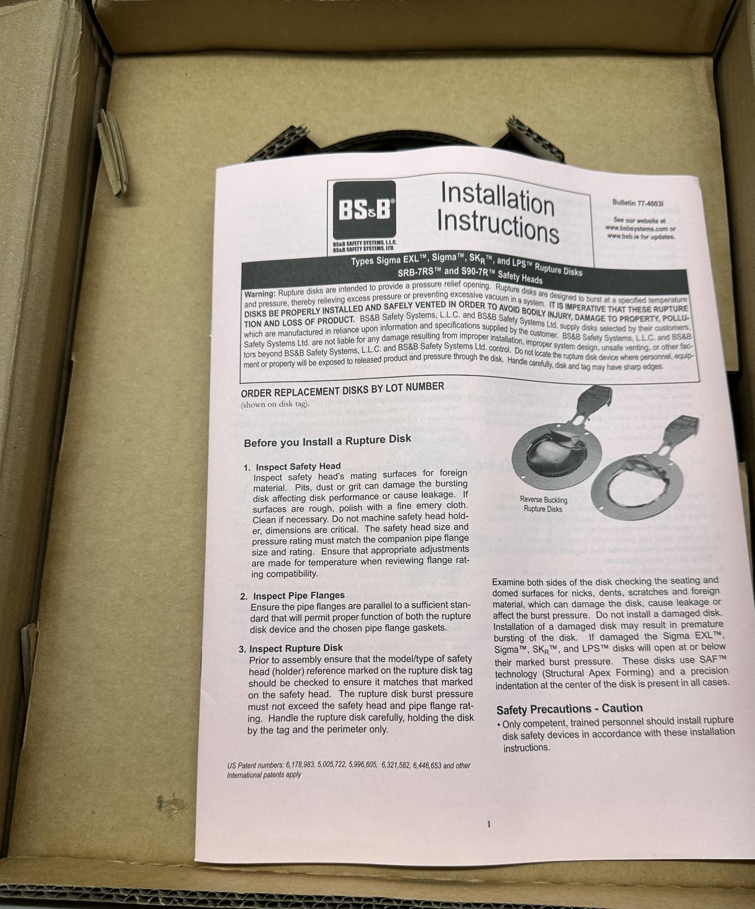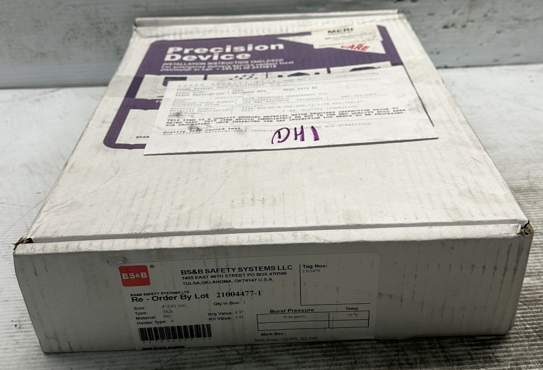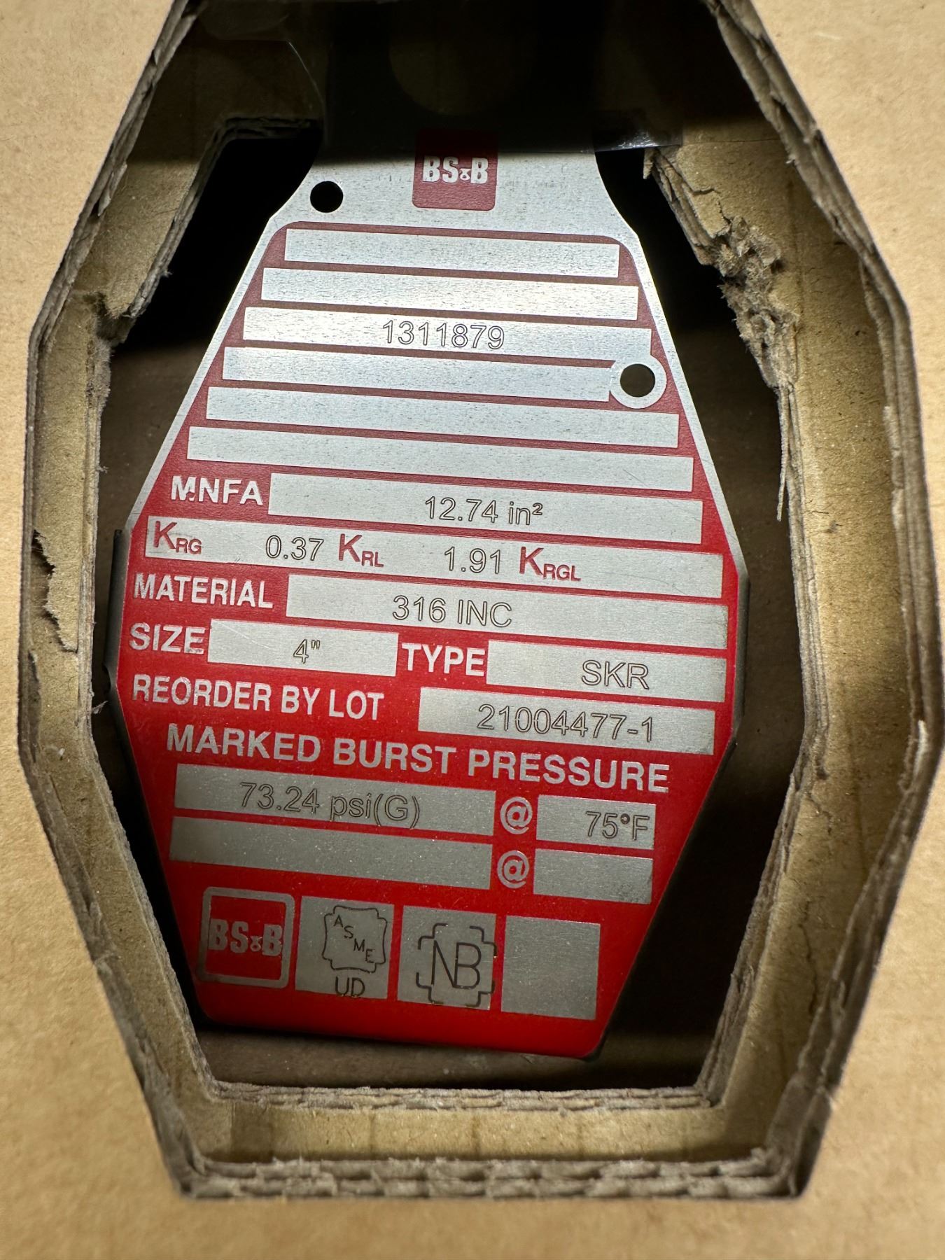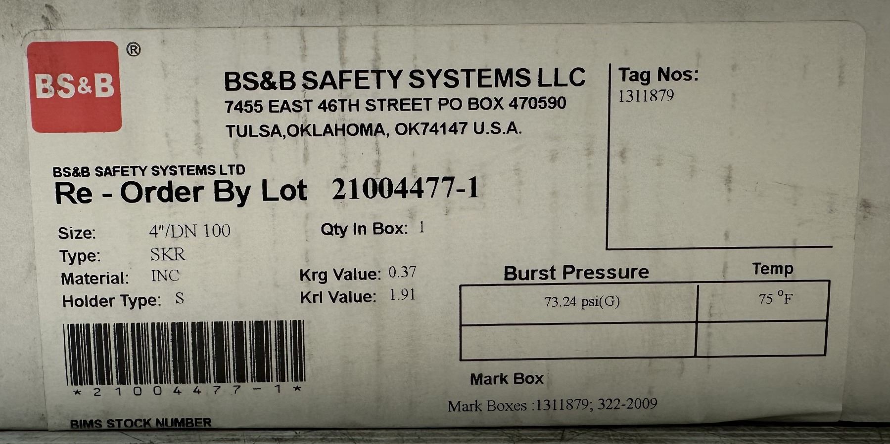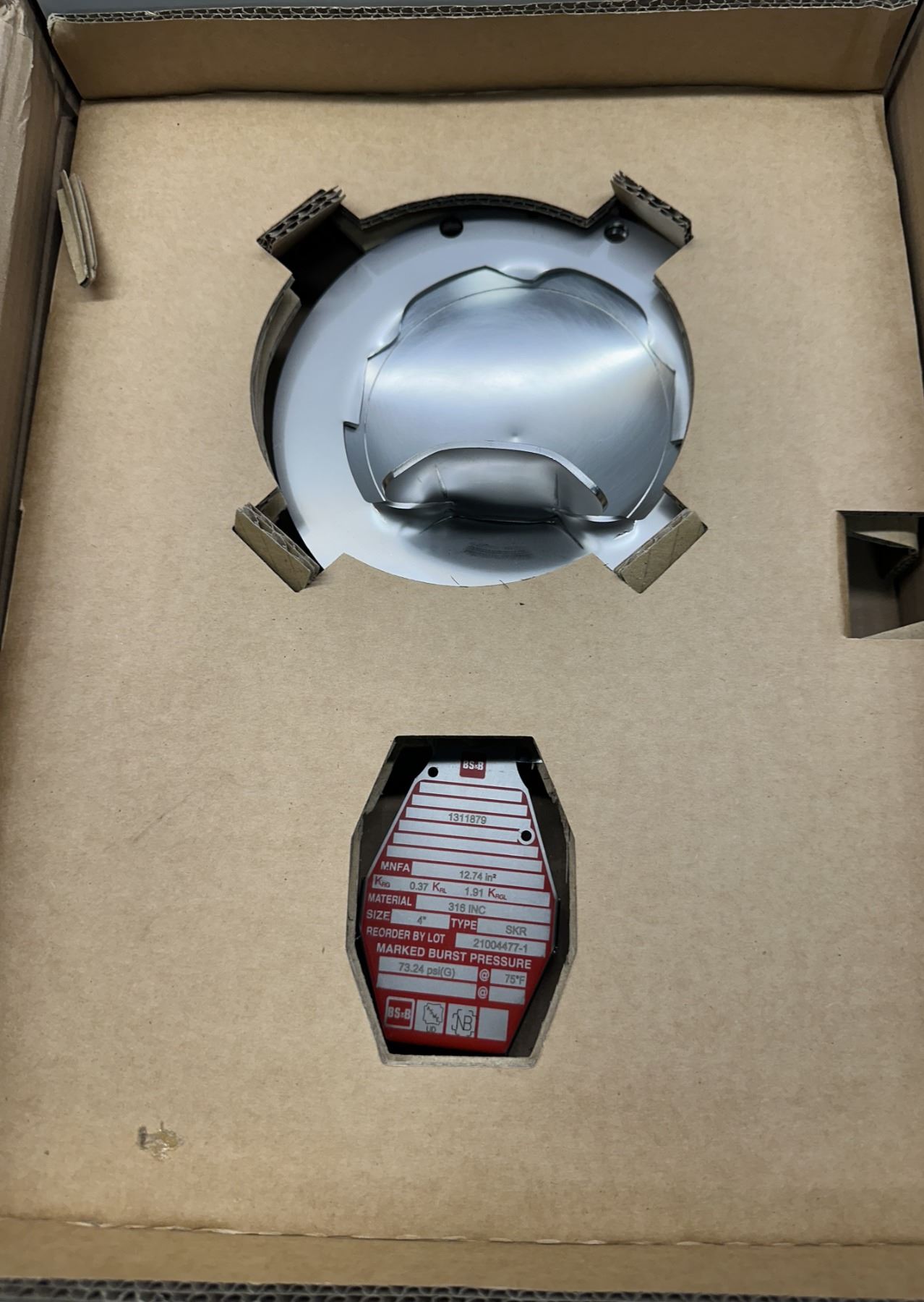 BS&B Safety #21004477-1 Rupture Disc Burst Pressure 73.24psi(G) @ 75 Degrees
