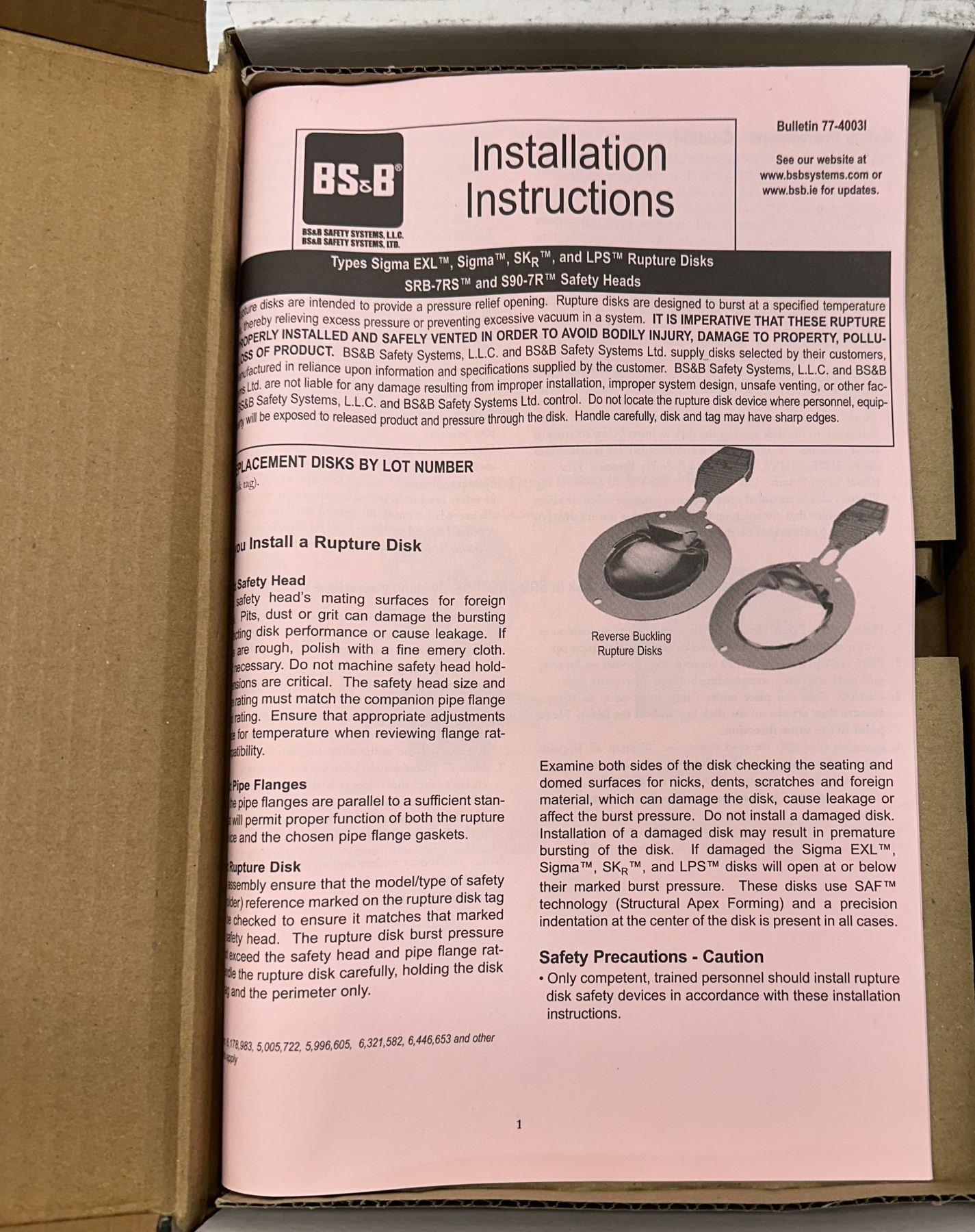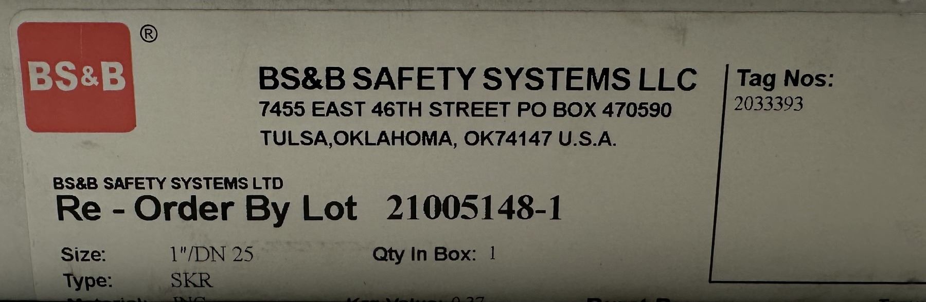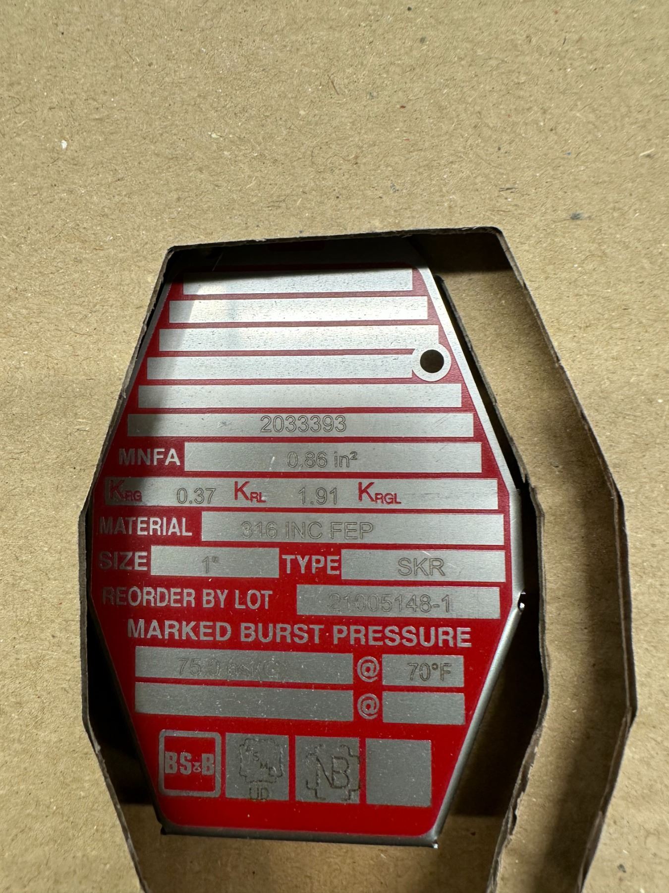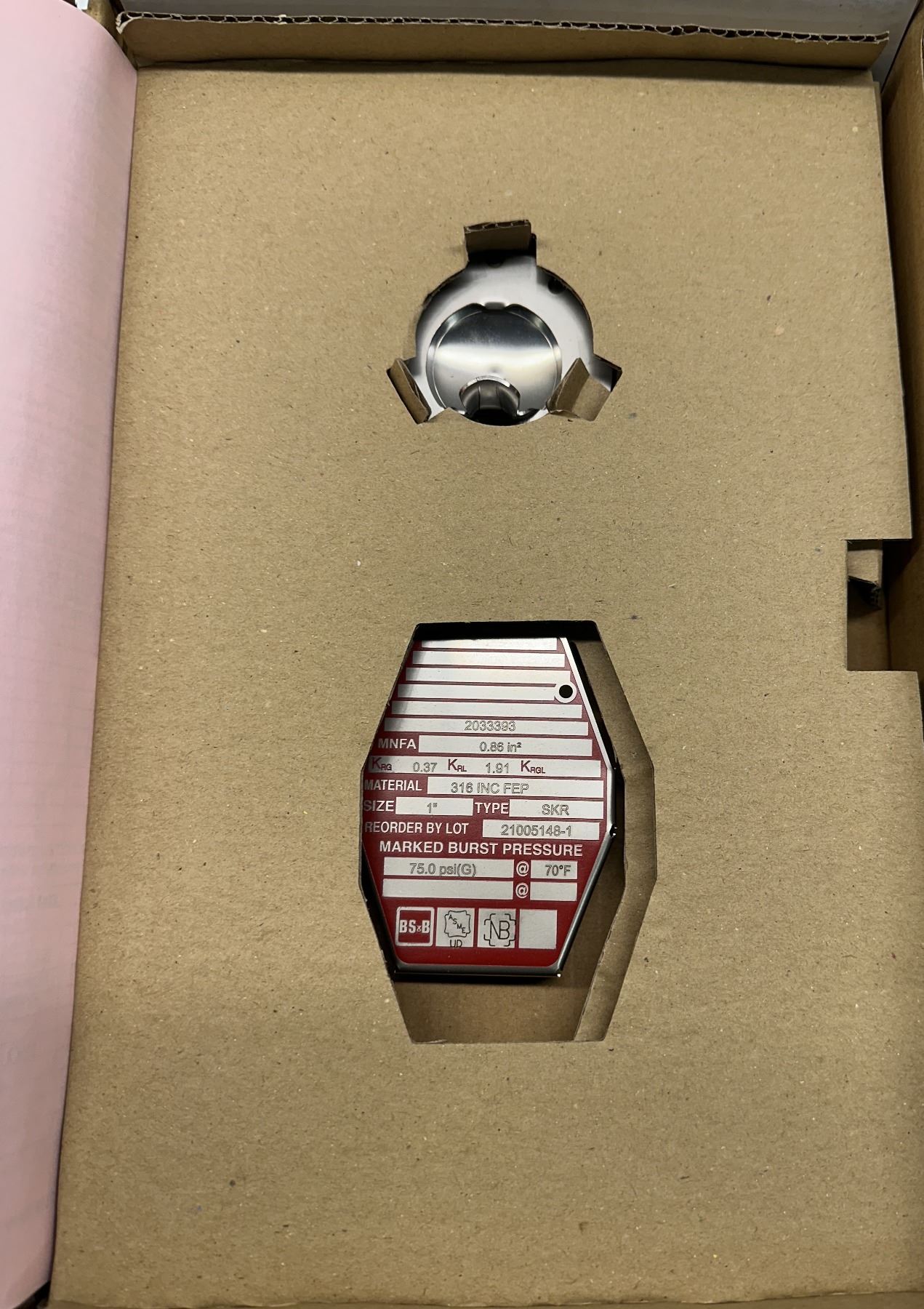 BS&B Safety #21005148-1 Rupture Disc Burst Pressure 75PSI(G) @ 70 Degrees