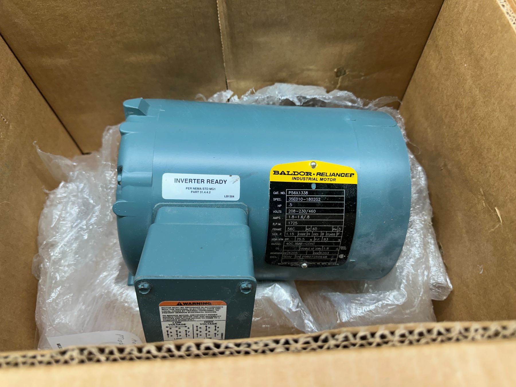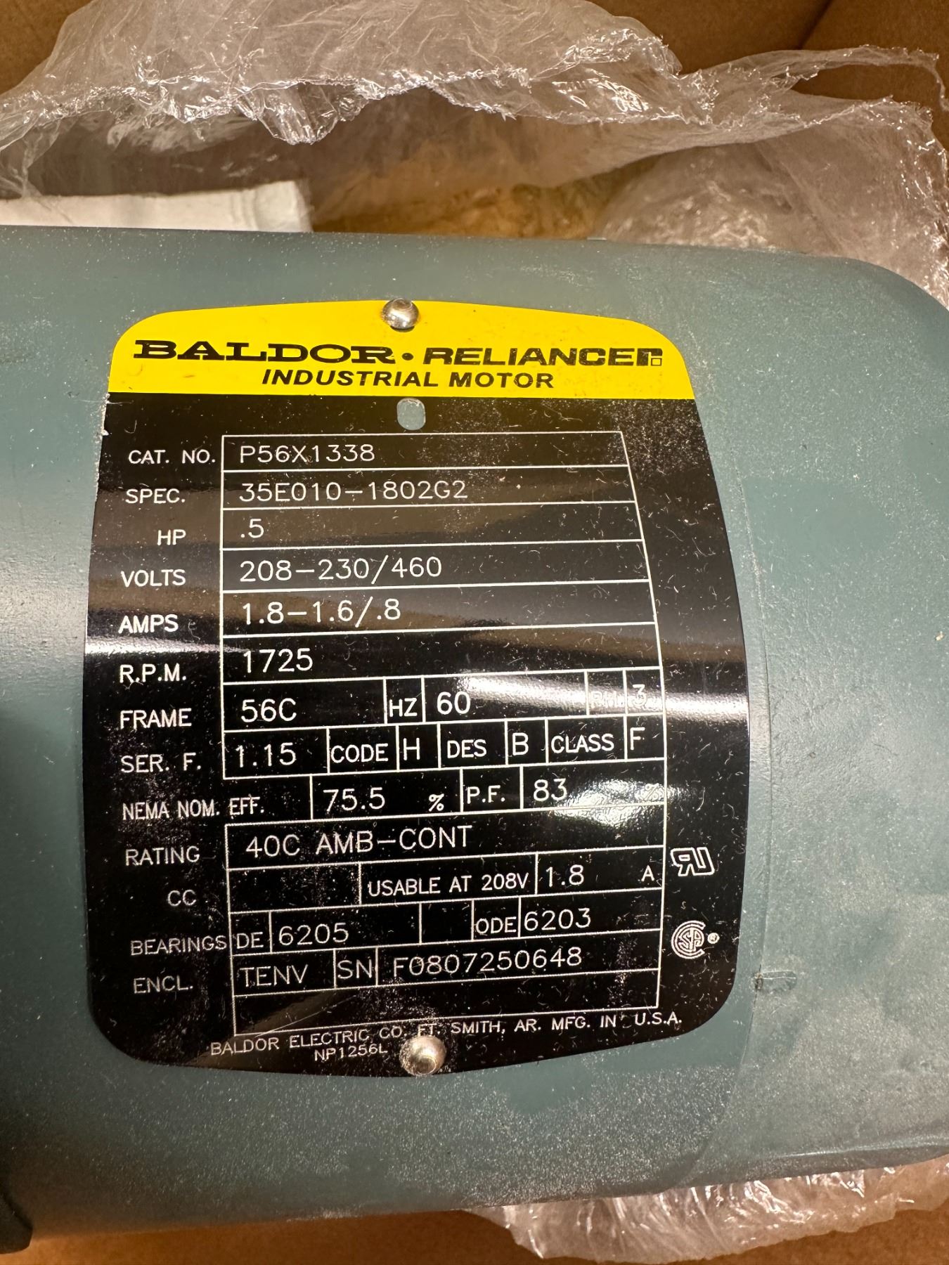Baldor #p56x1338 .5hp Industrial Motor