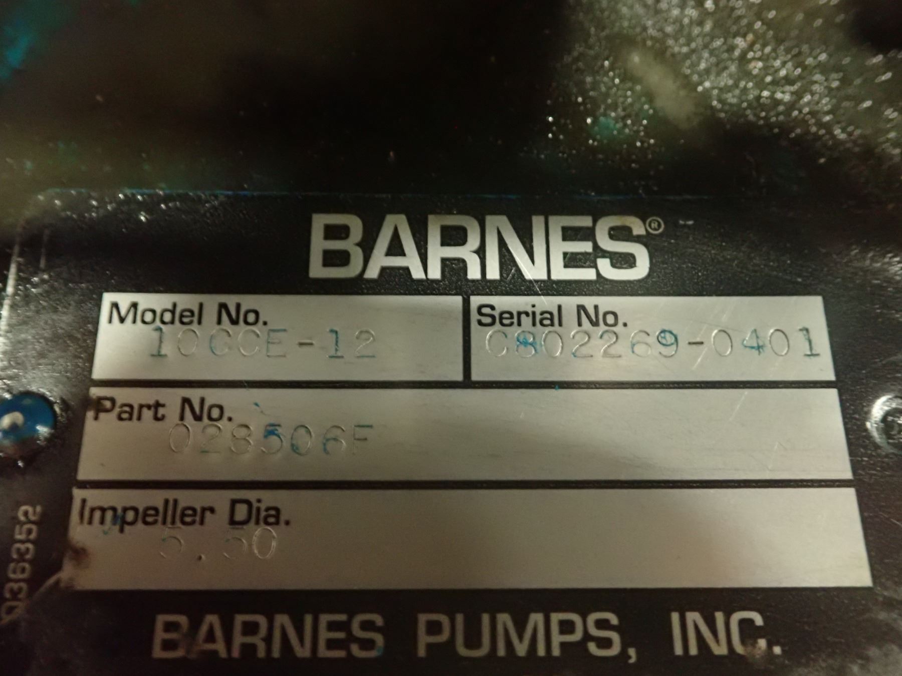 Barnes Ejector Pump with 3HP Motor, M/N: 10CCE-12