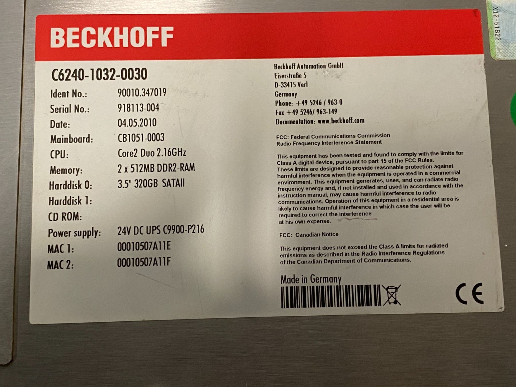 Beckhoff # C6240-1032-0030 Unit