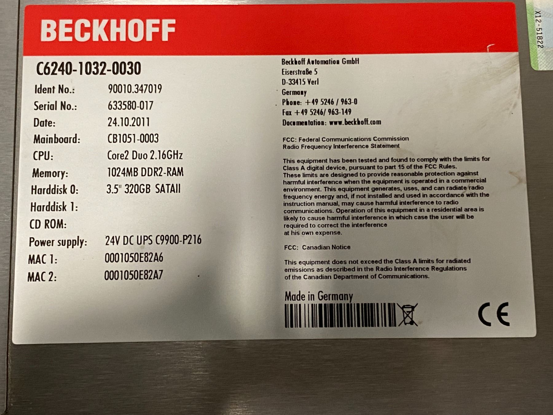 Beckhoff # C6240-1032-0030 Unit