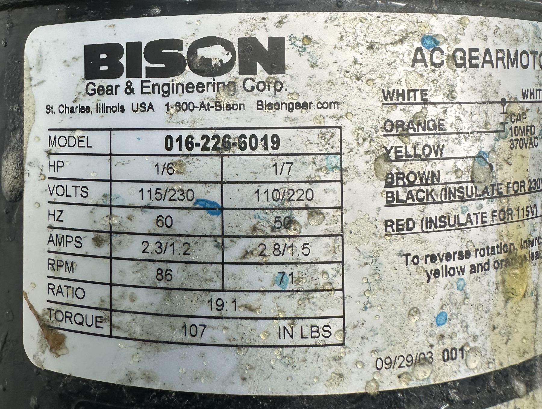Bison #016-226-6019 AC Gear Motor