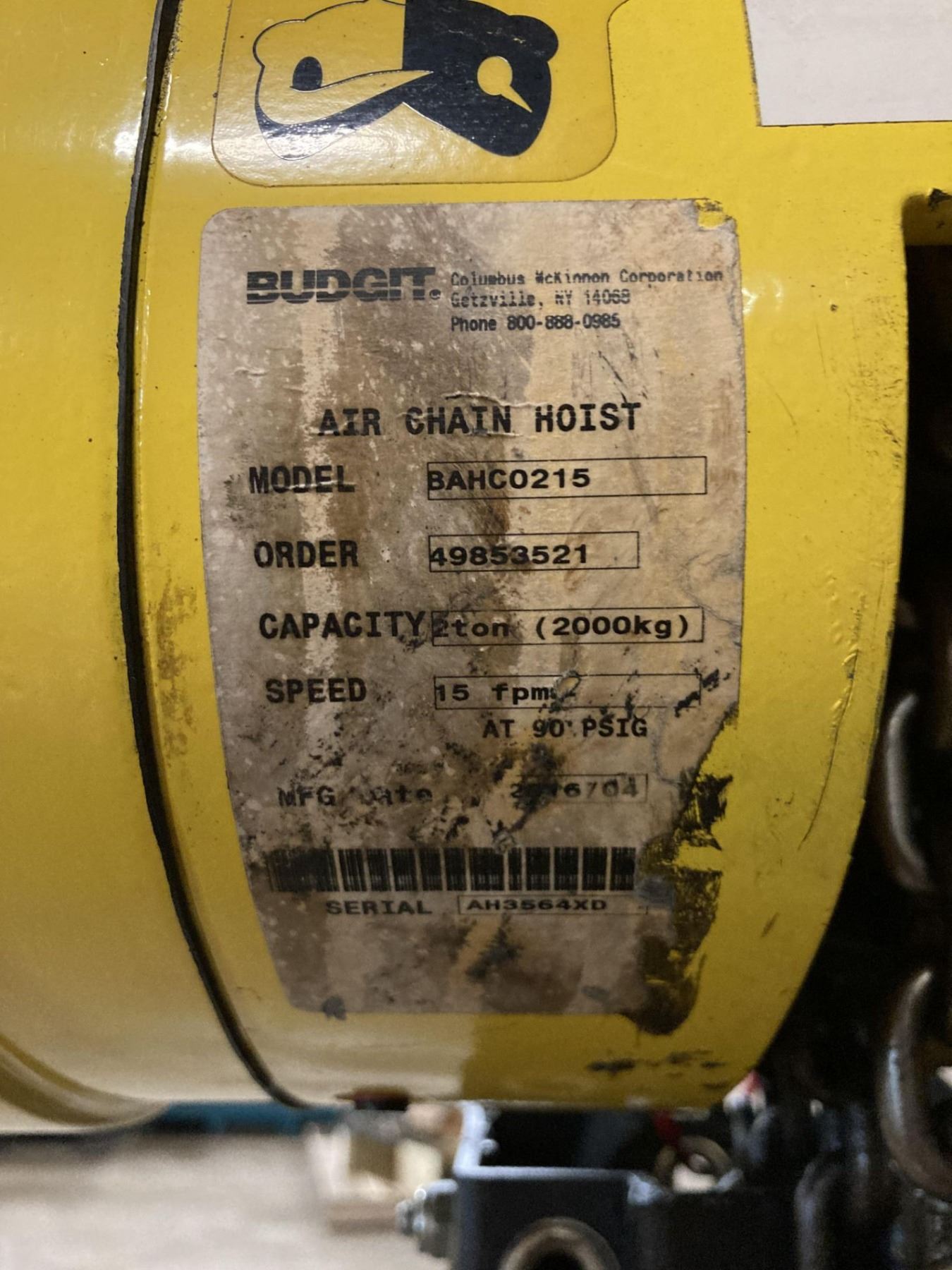 Budgit 2 Ton Air Chain Hoist, M/N: BAHC0215
