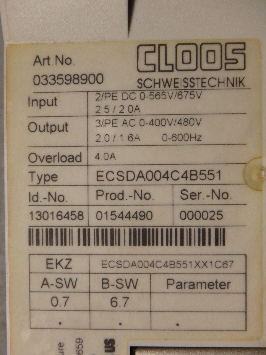 CLOOS ECSDA004C4B551, ART NO 033598900, ID 13016458 *CRACKED PLASTIC-SEE PICS*