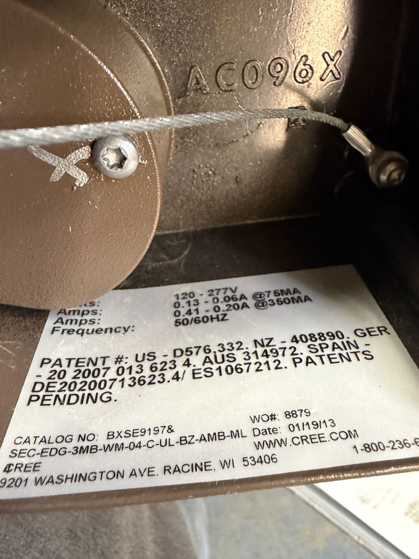 CREE #BXSE9197& #SEC-EDG-3MB-WM-04-C-UL-BZ-AMB-ML4