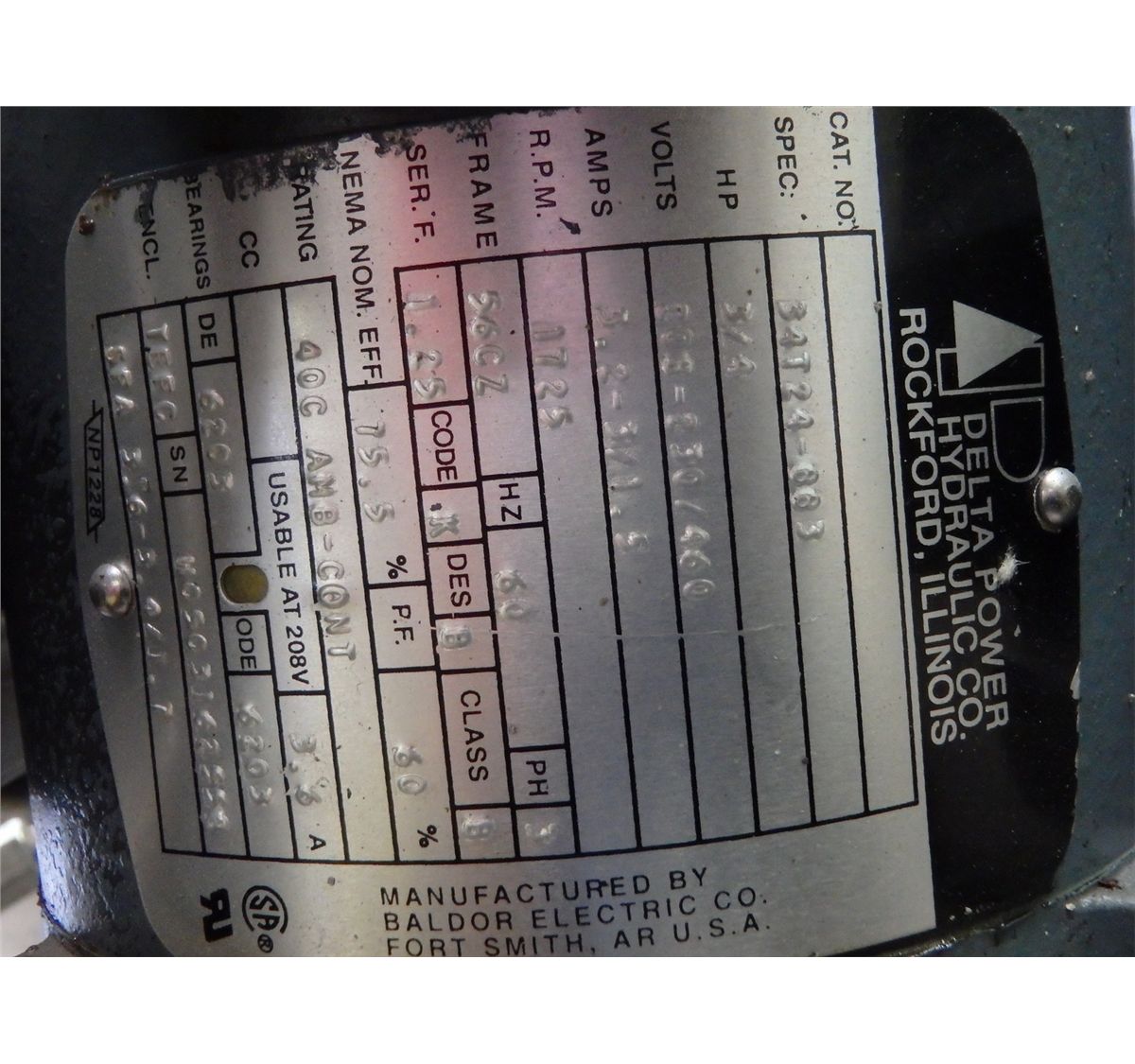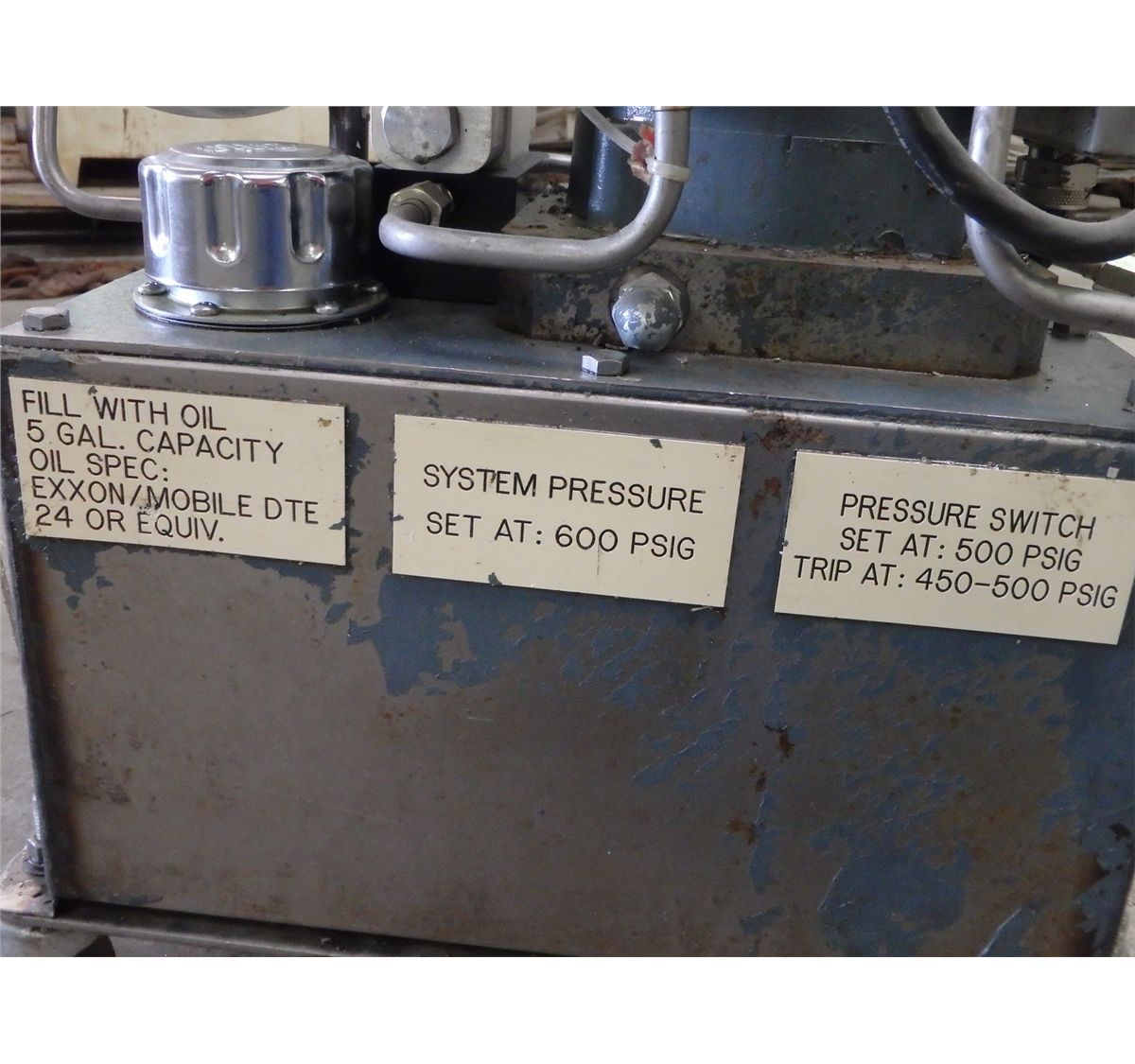 Cellcon Hydraulic Tank, No Main Tag, Valve M/N- 6551-D03-24VDC-10, Motor M/N- 34T24-883
