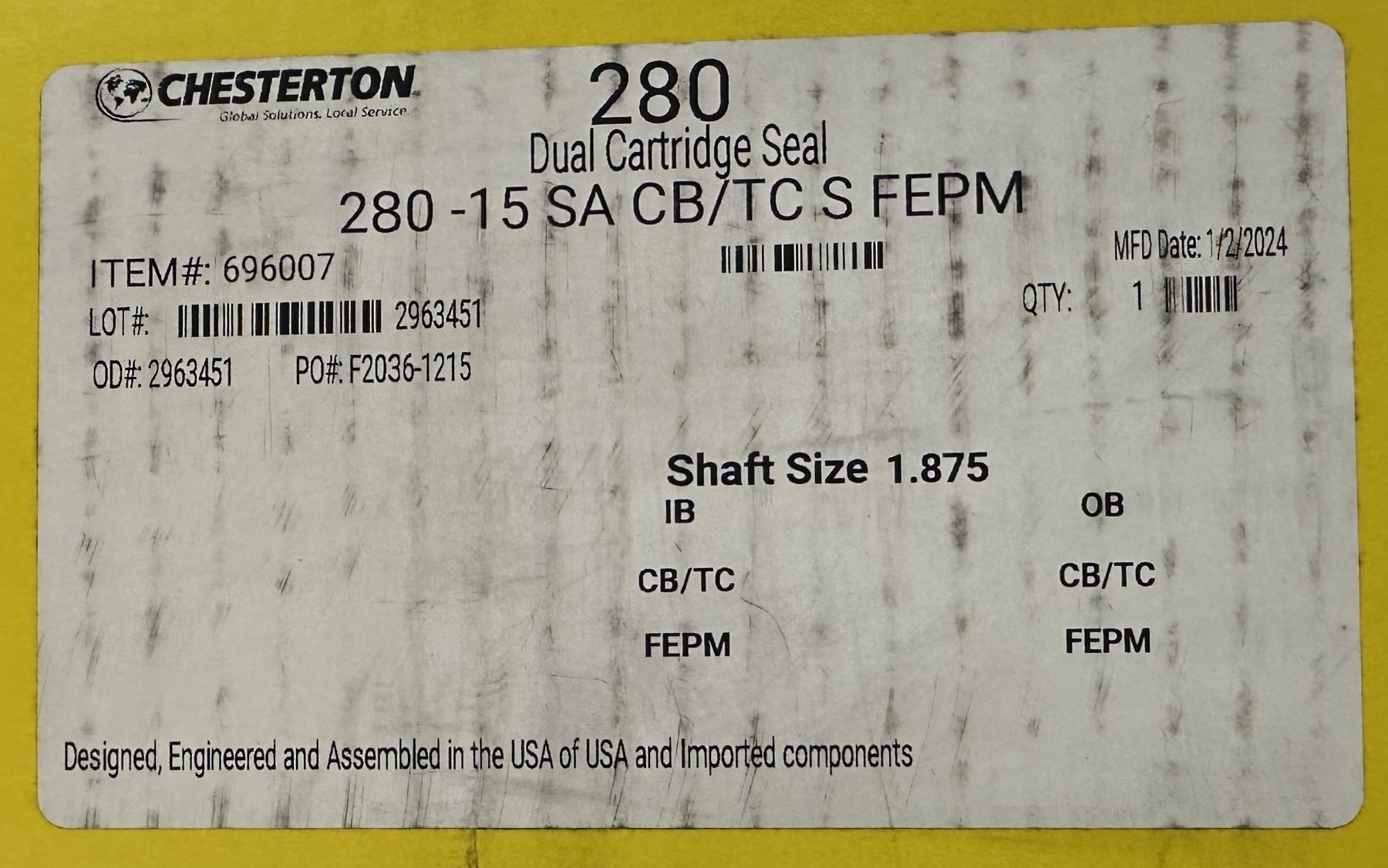 Chesterton #696007 / 280-15 SA CB/TC S FEPM Dual Cartridge Seal