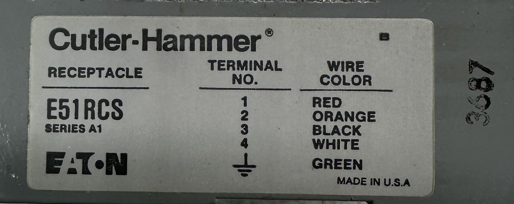 Cutler-Hammer #E51RCS Receptacle Cable