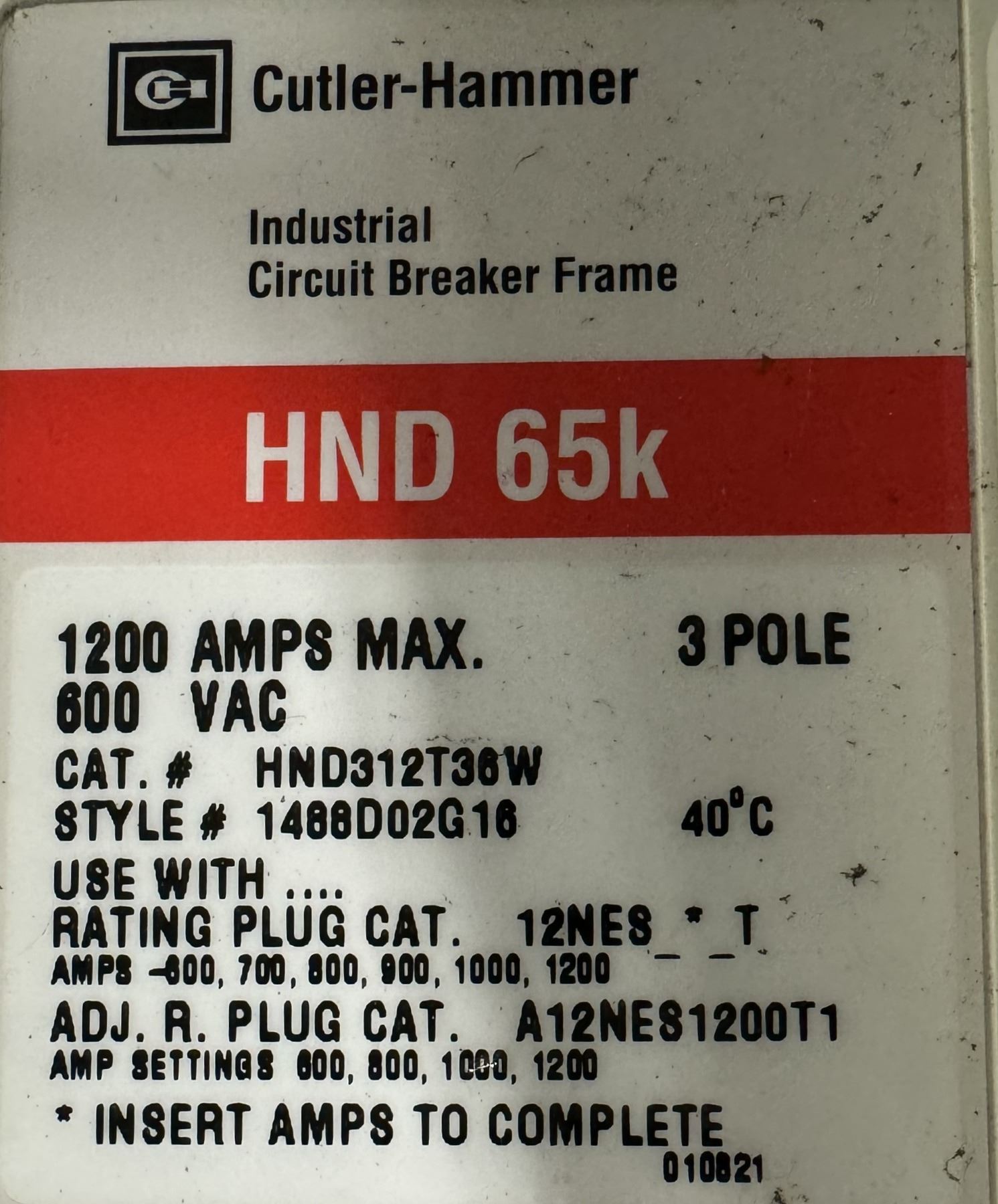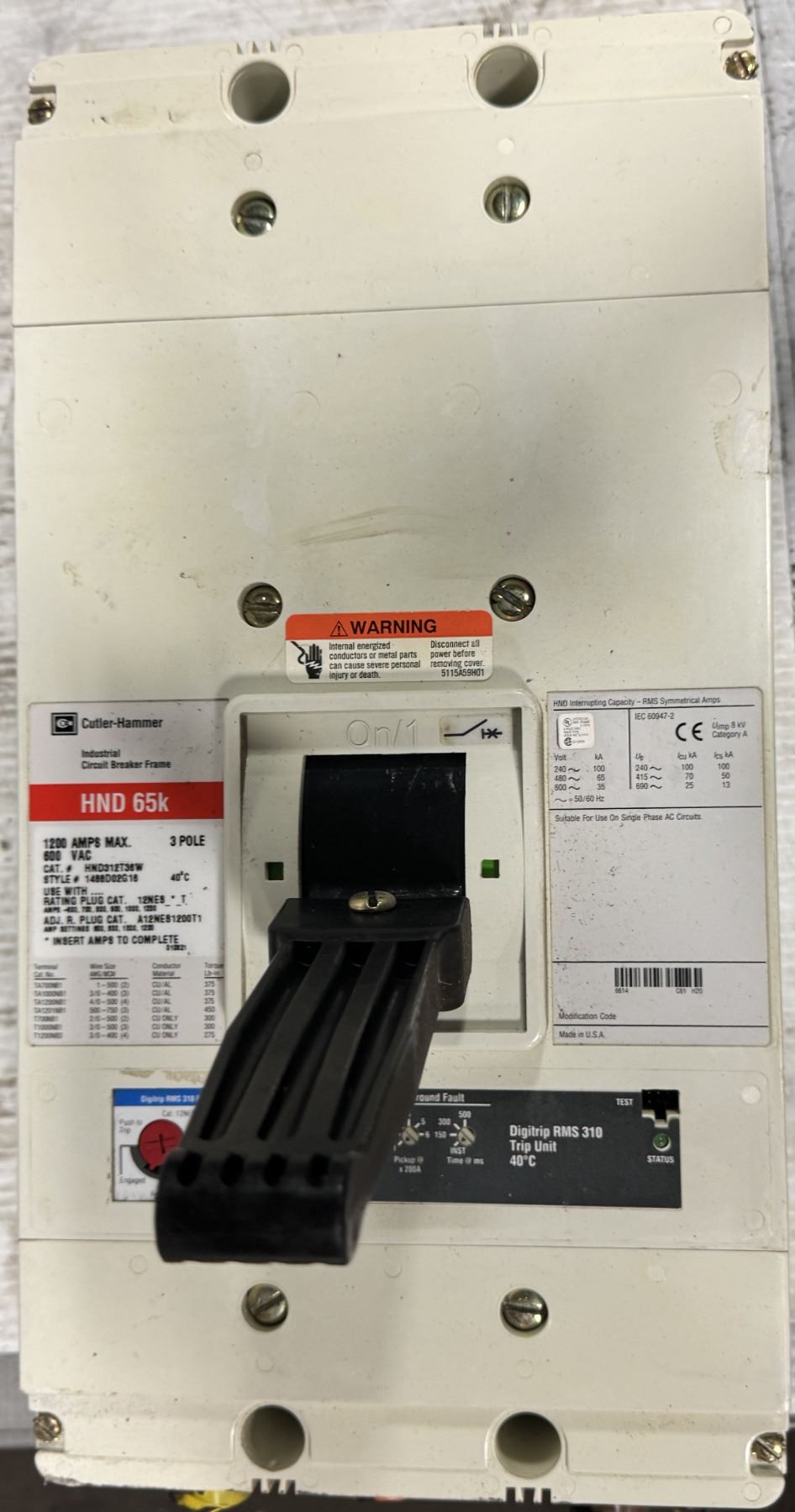 Cutler-Hammer #HND312T36W HND 65k Industrial Circuit Breaker Frame