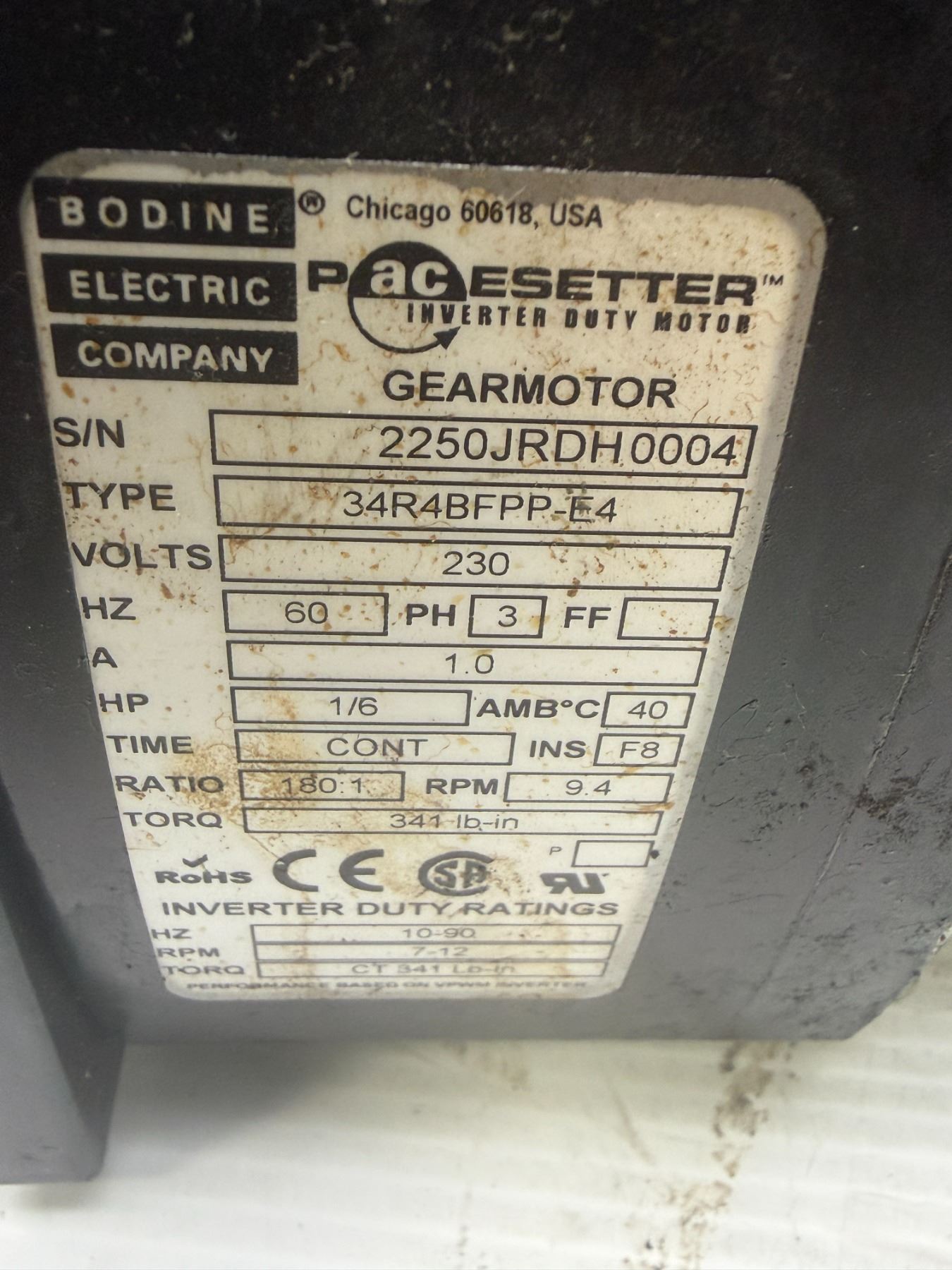 Dorner #62M180PS423FN / Bodine #34R4BFPP-E4