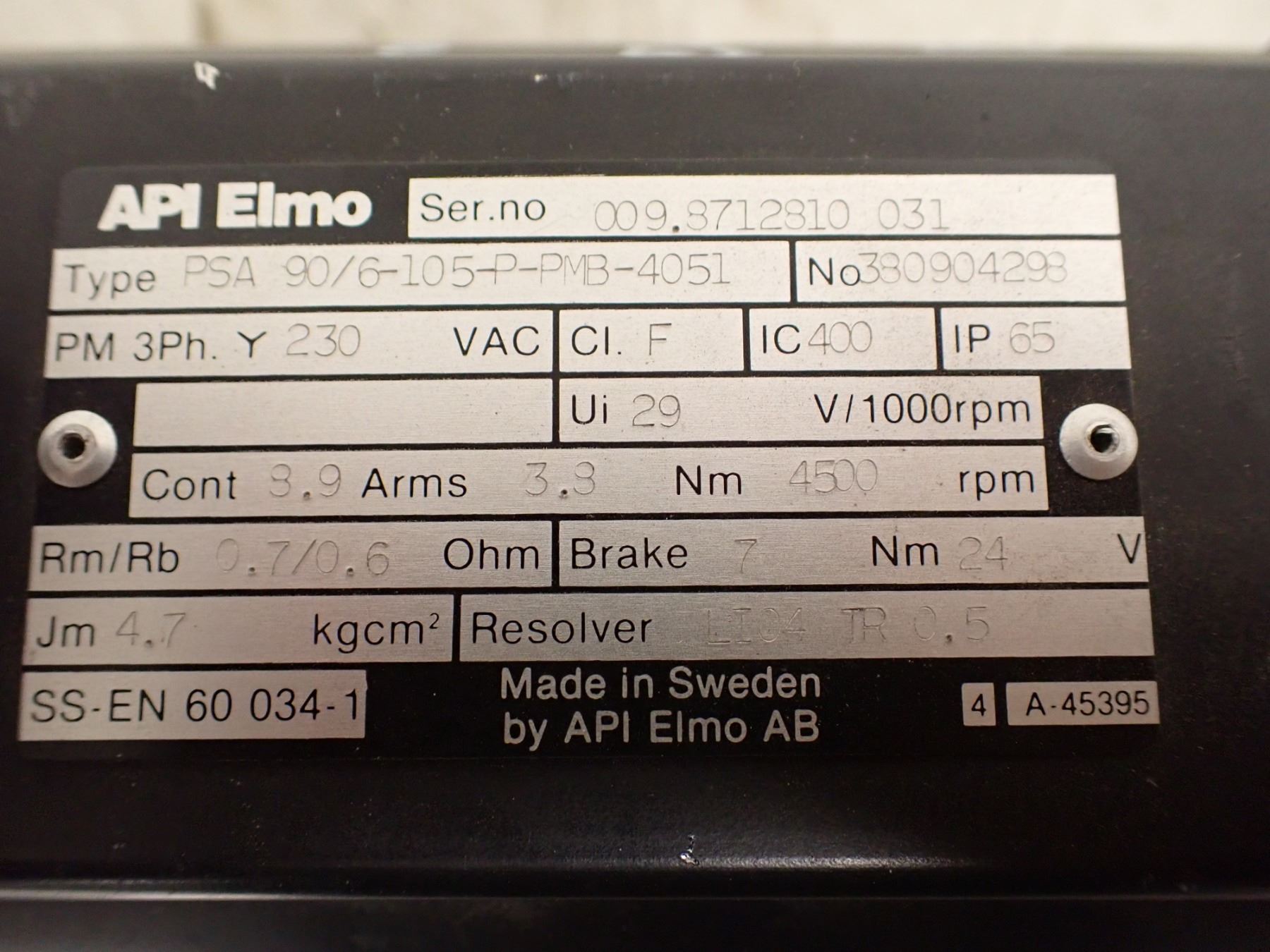 ELMO PSA90/6-105-P-PMB-4051 AC SERVO MOTOR