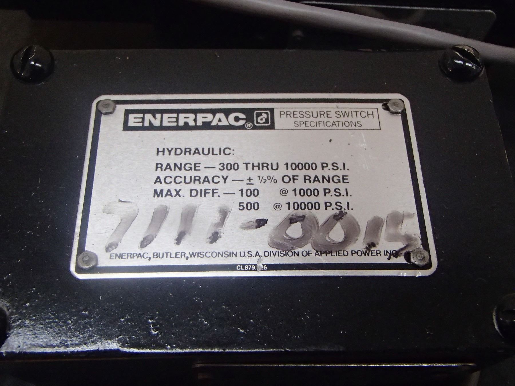 Enerpac Hydraulic Pressure Switches, M/N: Y84-900