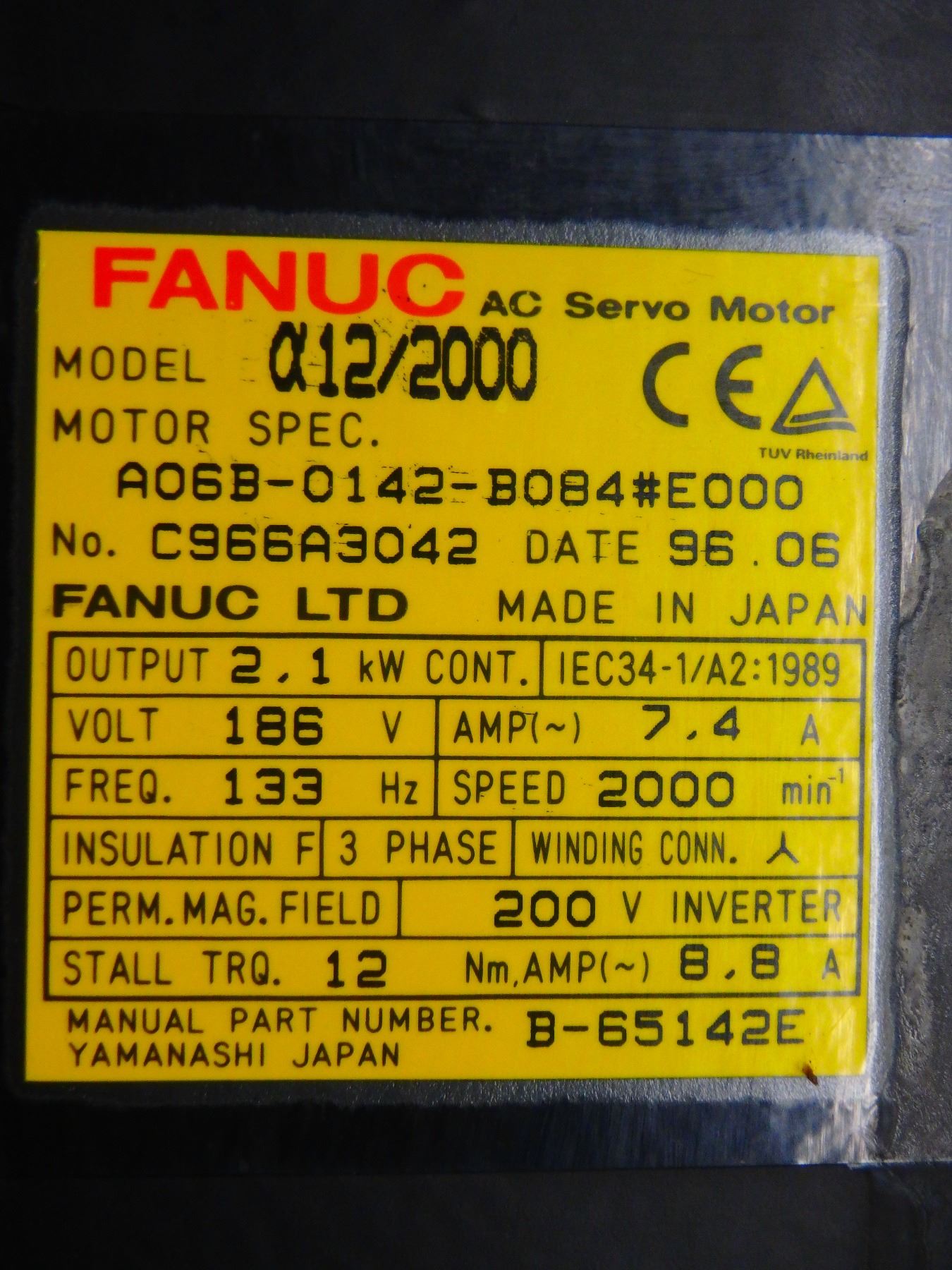FANUC A06B-0142-B084#E000 a12/2000 AC SERVO MOTOR