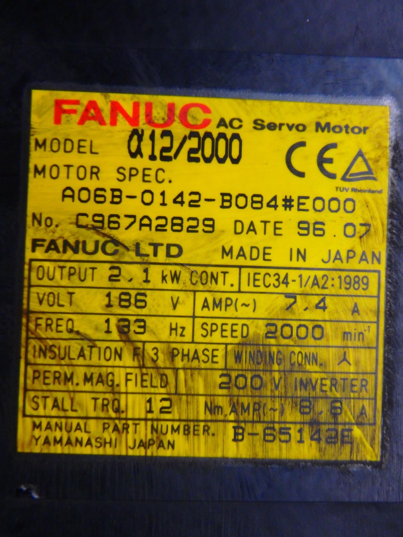 FANUC A06B-0142-B084#E000 a12/2000 AC SERVO MOTOR