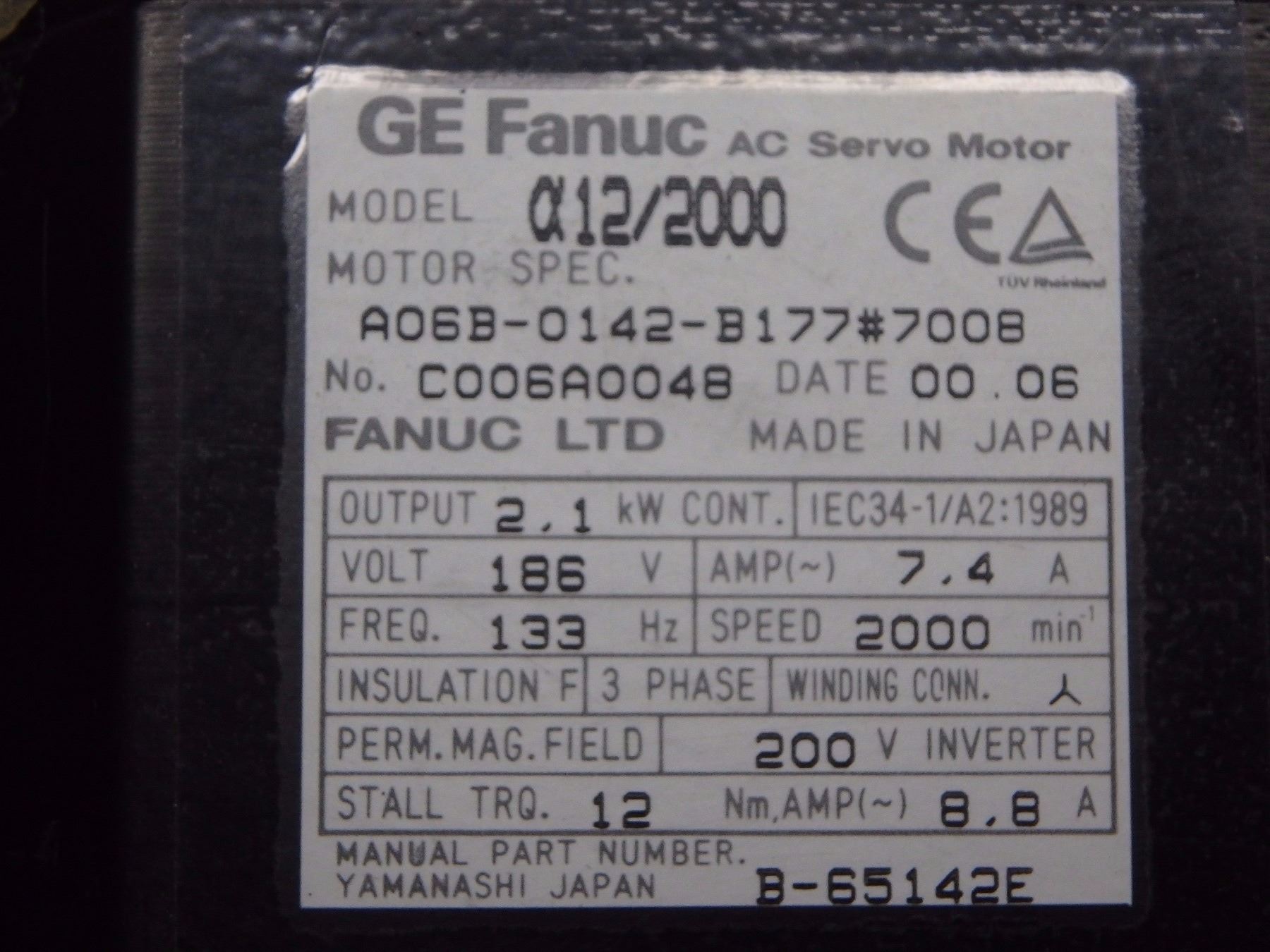 FANUC A06B-0142-B177#7008 a12/2000 AC SERVO MOTOR