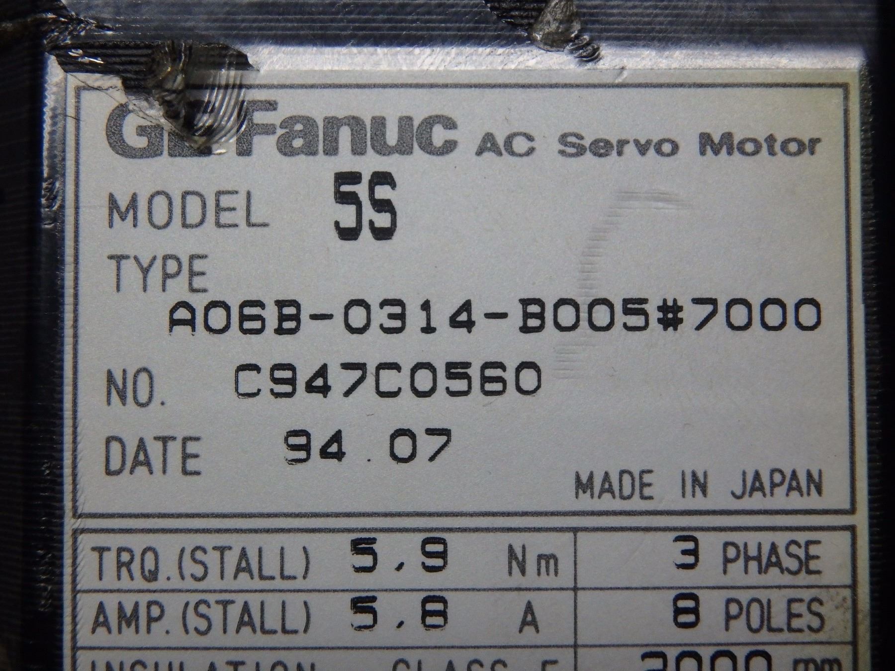 FANUC A06B-0314-B005#7000 5S AC SERVO MOTOR