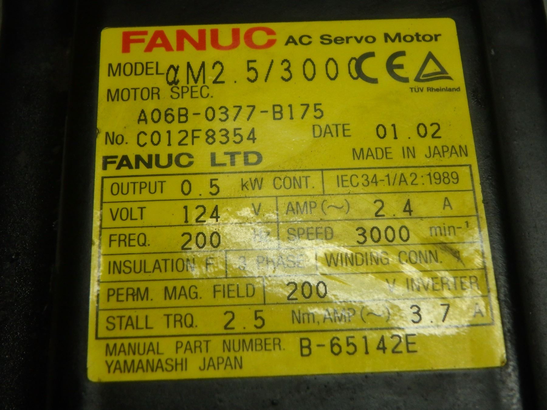 FANUC A06B-0377-B175 AC SERVO MOTOR W/ A860-0360-T001 PULSECODE
