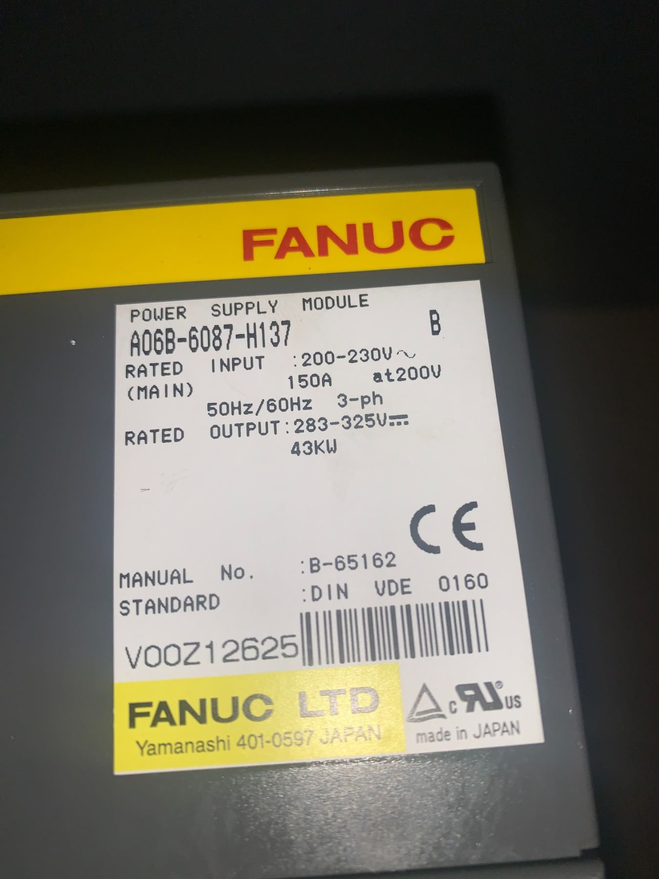 FANUC A06B-6087-H137 POWER SUPPLY MODULE